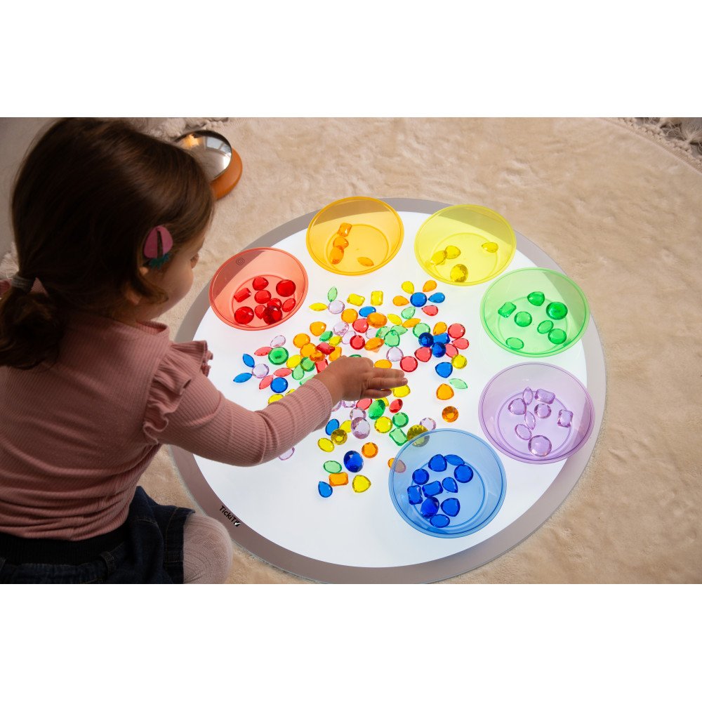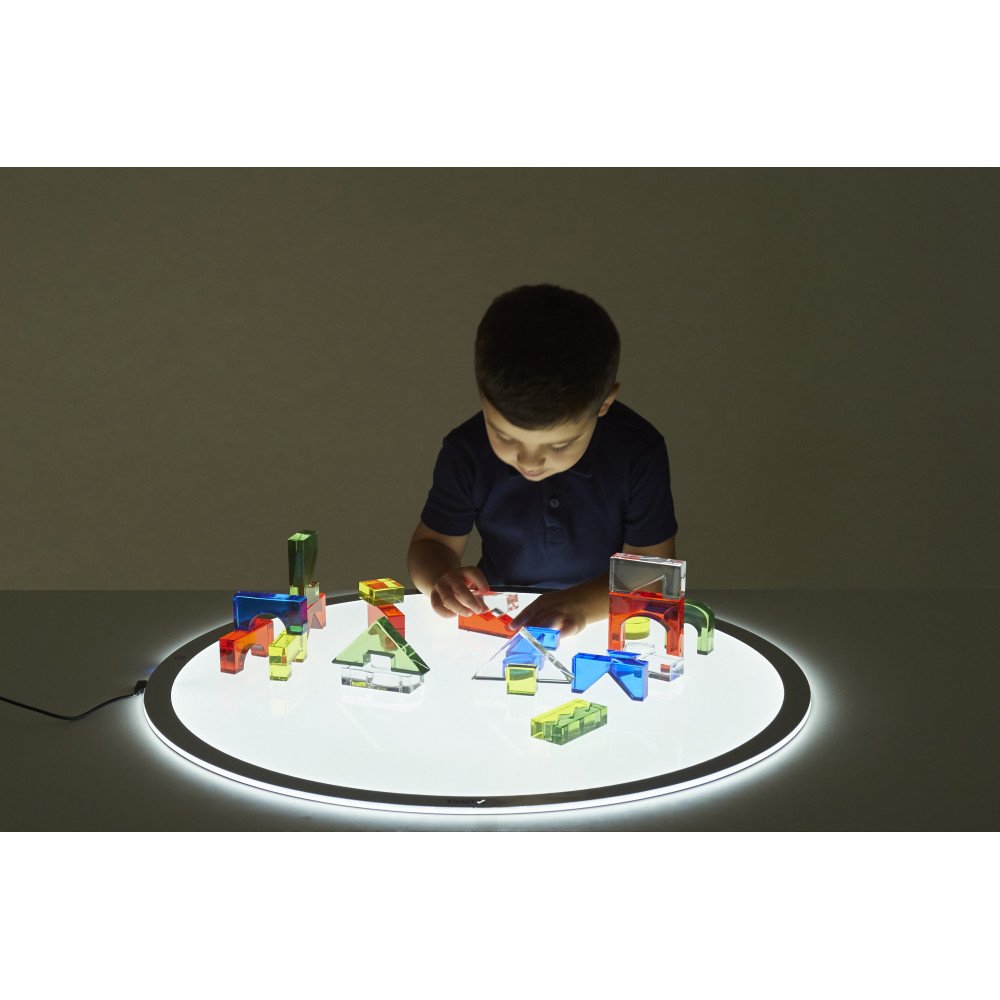 Panelėje yra trys šviesos intensyvumo lygiai, todėl apšvietimą lengva pritaikyti skirtingoms veikloms – nuo ramių sensorinių patirčių iki aktyvesnių STEAM užduočių, eksperimentų ar kūrybinių kompozicijų. Plonas dizainas, užapvalinti kraštai ir patvari konstrukcija leidžia panelę patogiai pernešti, naudoti kasdien ir greitai nuvalyti po veiklų.