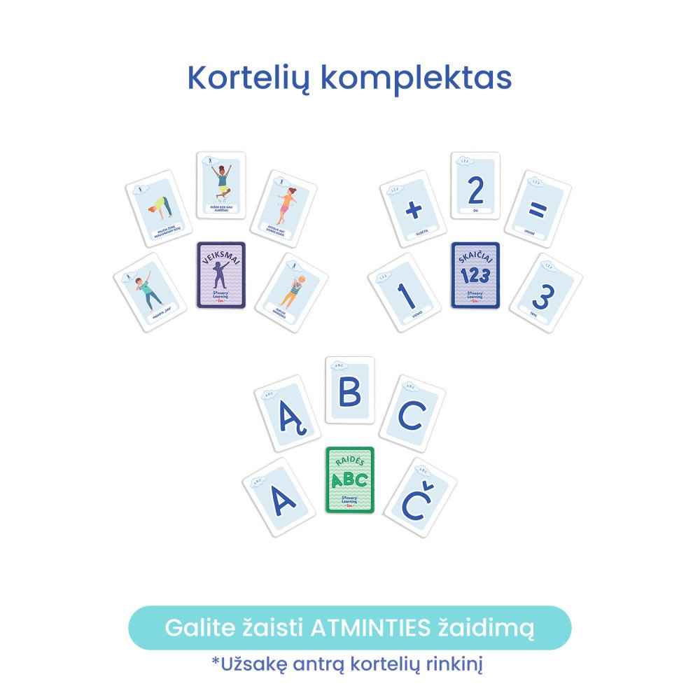 *Užsakę papildomą komplektą kortelių, galėsite žaisti „Atminties" (Memo) žaidimus.