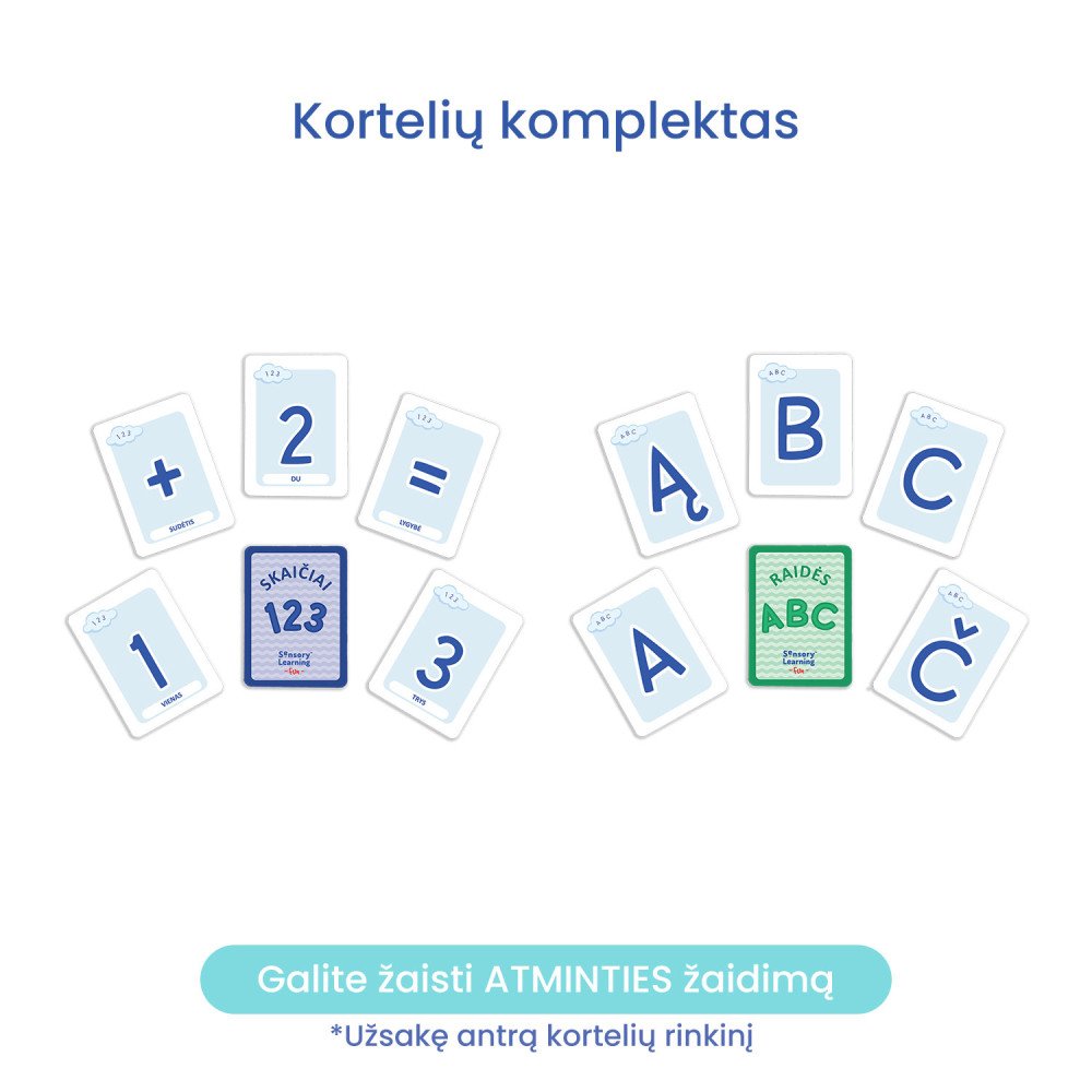 *Užsakę papildomą komplektą kortelių, galėsite žaisti „Atminties" (Memo) žaidimus.