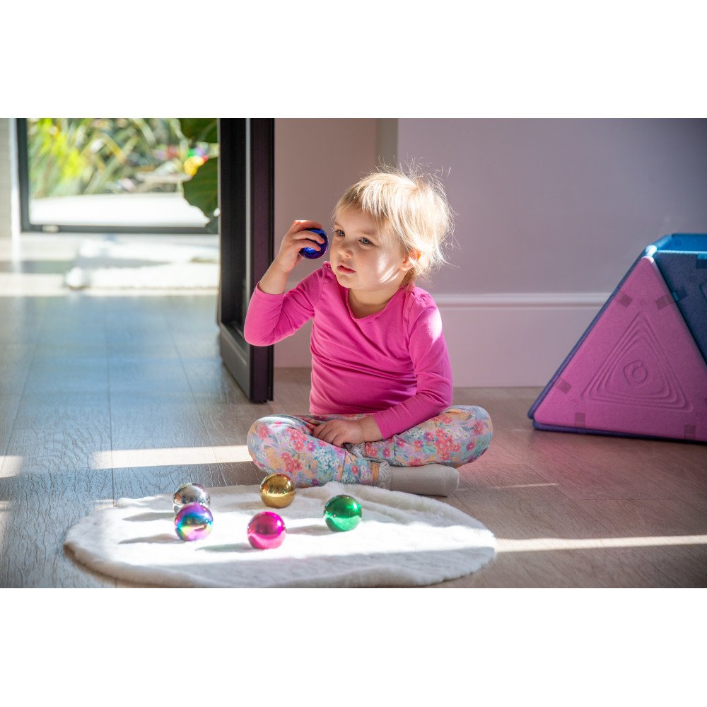 • Spalvoti sensoriniai šviesą atsipindintys kamuoliukai (6 vnt.)