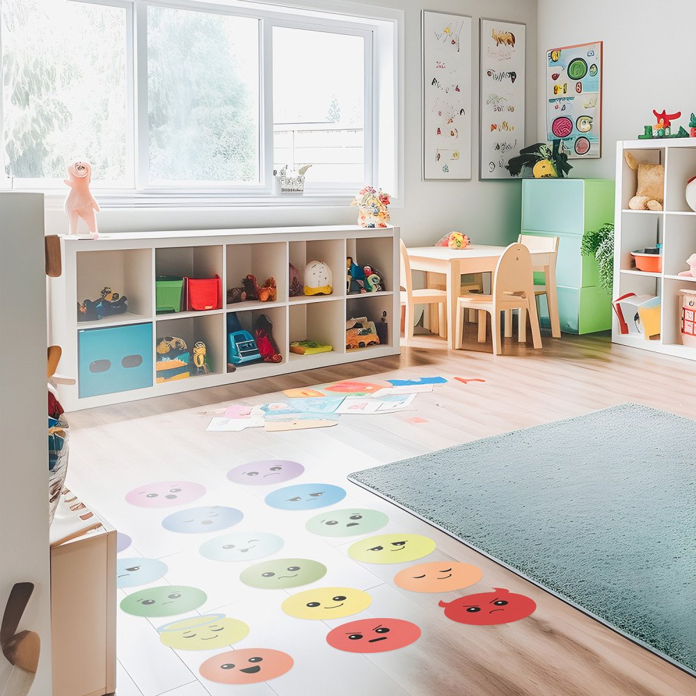 Lipdukai ant grindų su emocijomis – puiki edukacinė priemonė ir puošmena mokykloje, darželyje ar namuose. Vaikų emocijų pažinimas turi būti ugdomas nuo mažens, tad šie edukaciniai lipdukai grindims puikiai tiks į pagalbą!