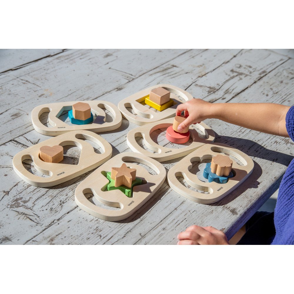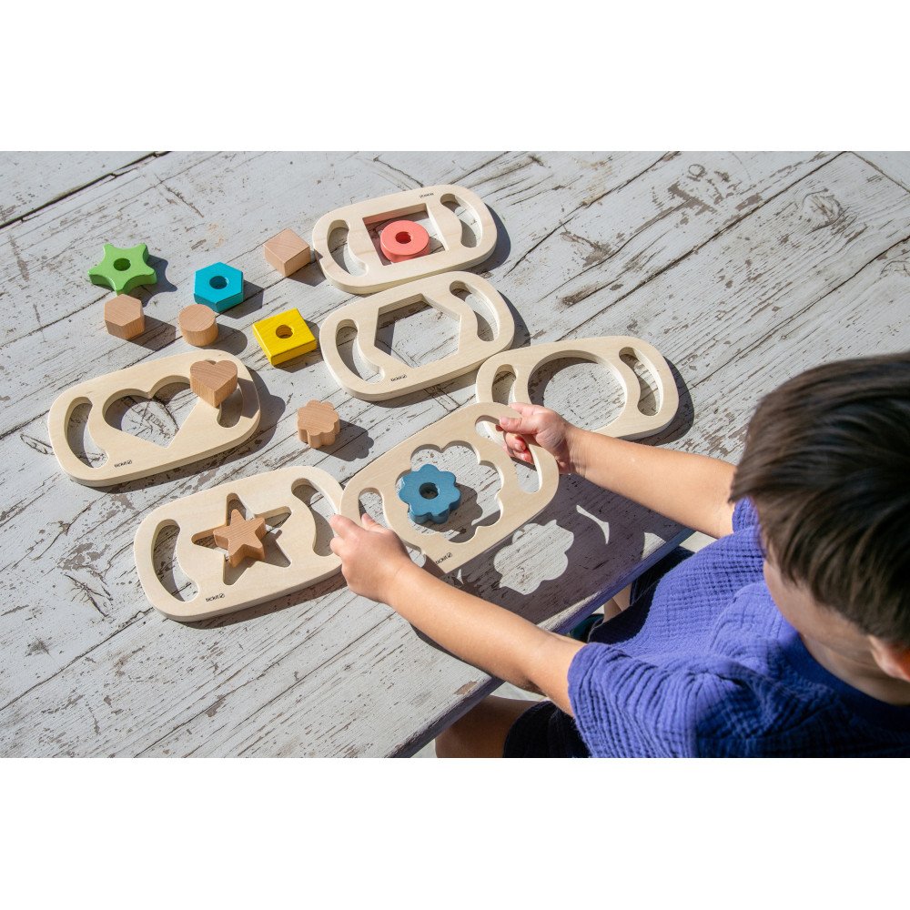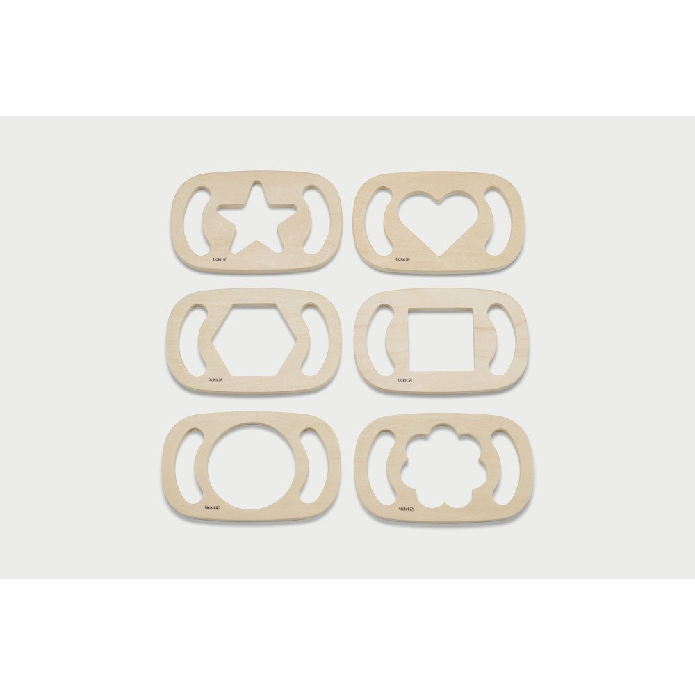 • Rinkinį sudaro 6 vnt. medinių rėmelių su skirtingomis formomis.