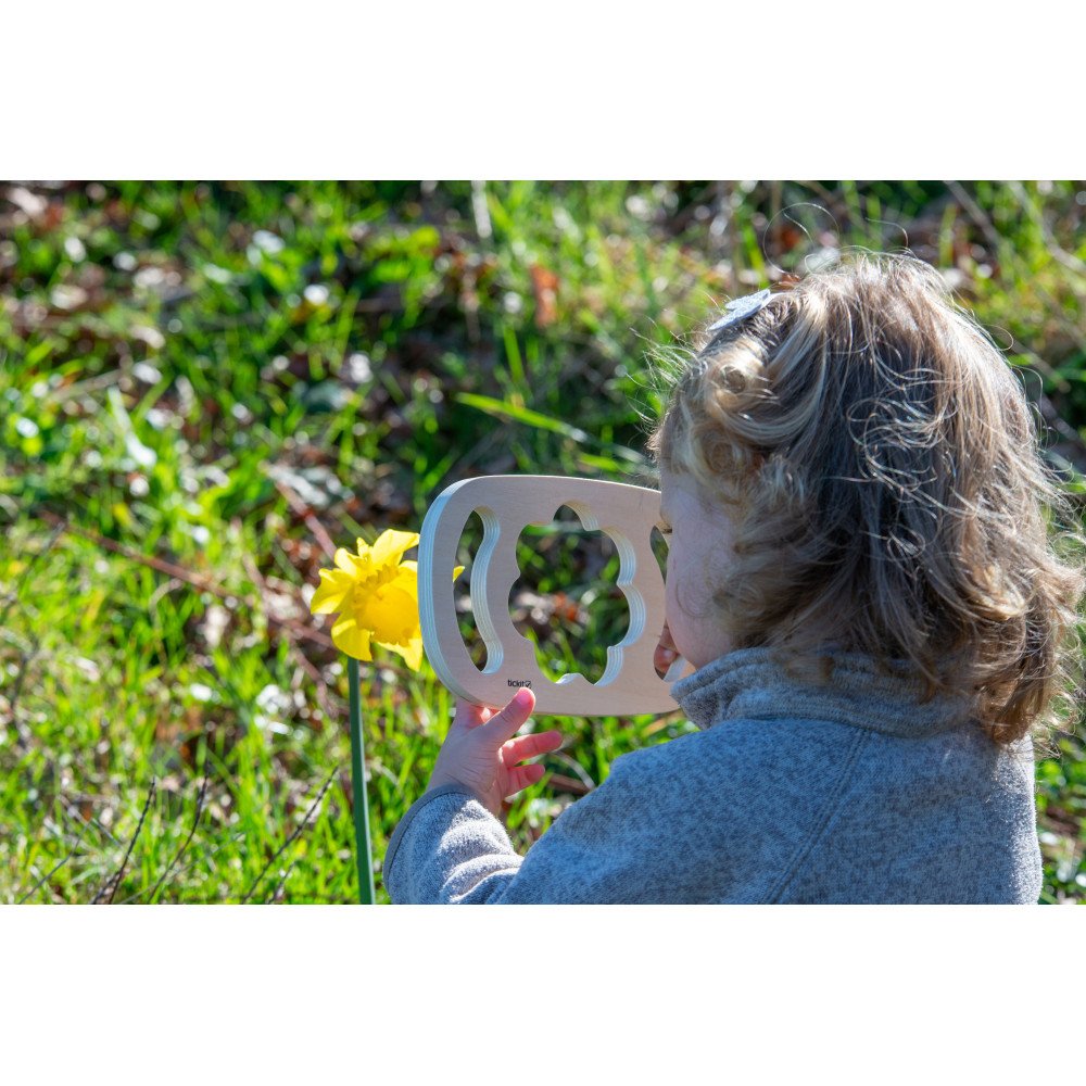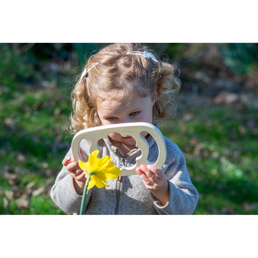 Formų stebėjimo rėmeliai padeda vaikams atpažinti geometrines formas ir tyrinėti aplinką žiūrint pro skirtingų formų langelius. Vaikas prideda rėmelį prie akių ir mato pasaulį per apskritimą, kvadratą ar kitą formą – taip lengviau sutelkti dėmesį į vieną vaizdo dalį, pastebėti kontūrus, linijas ir daiktų formas aplinkoje. Rėmeliai tinka pasivaikščiojimams lauke ir veikloms klasėje: vaikai ieško daiktų, kurie telpa į tam tikrą formą, lygina, kas labiau panašu į trikampį ar stačiakampį, ir mokosi stebėti detales.