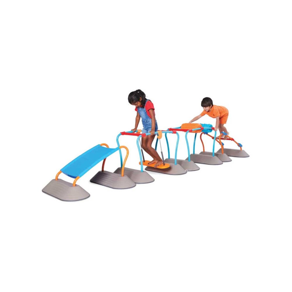 Kliūčių ruožas ypač naudingas, kai norima lavinti judesių planavimą ir kūno orientaciją erdvėje. Vaikas turi įvertinti atstumą iki kitos dalies, pasirinkti žingsnio ilgį, nuspręsti, kaip peržengti ar perlipti kliūtį, ir išlaikyti kontrolę nusileidžiant. Kintanti trasos konfigūracija padeda vengti pasikartojimo, vaikai kiekvieną kartą sprendžia naują judesio užduotį, todėl aktyviai dirba koordinacija, reakcija ir dėmesys. Tai tinka ir judesio pertraukėlėms, ir struktūruotiems užsiėmimams, kai reikalingas aiškus fizinis iššūkis visam kūnui.