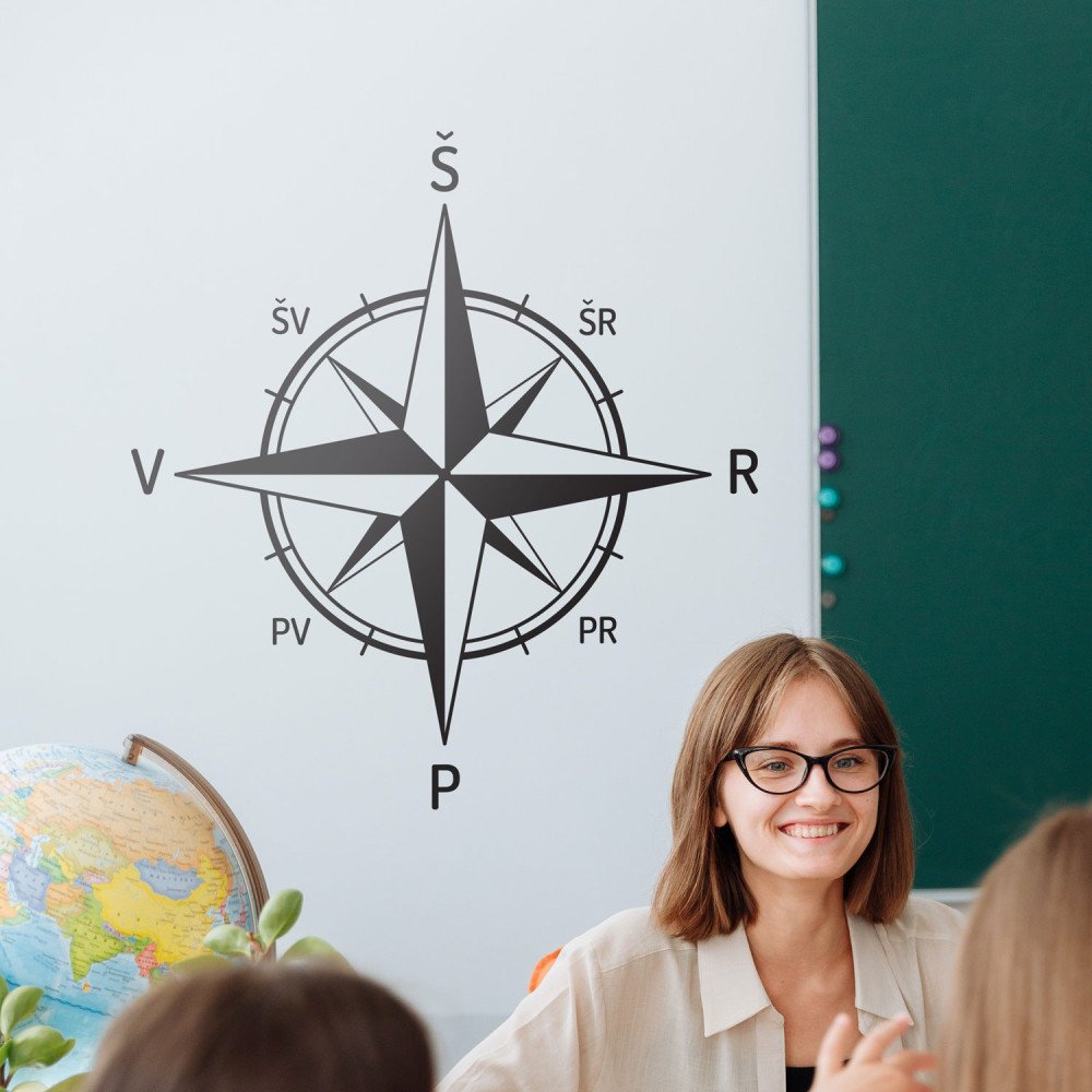 Pasaulio krypčių lipdukas „Kompasas“ – tai aiški ir patogi edukacinė priemonė, padedanti vaikams bei mokiniams greičiau perprasti pasaulio kryptis, orientaciją erdvėje ir krypčių derinius. Lipduke pavaizduotas kompasas su keturiomis pagrindinėmis kryptimis (šiaurė, pietūs, rytai, vakarai) ir jų kombinacijomis (pvz., šiaurės rytai, pietvakariai ir kt.), todėl jis tampa nuolat matomu orientyru mokymosi aplinkoje.