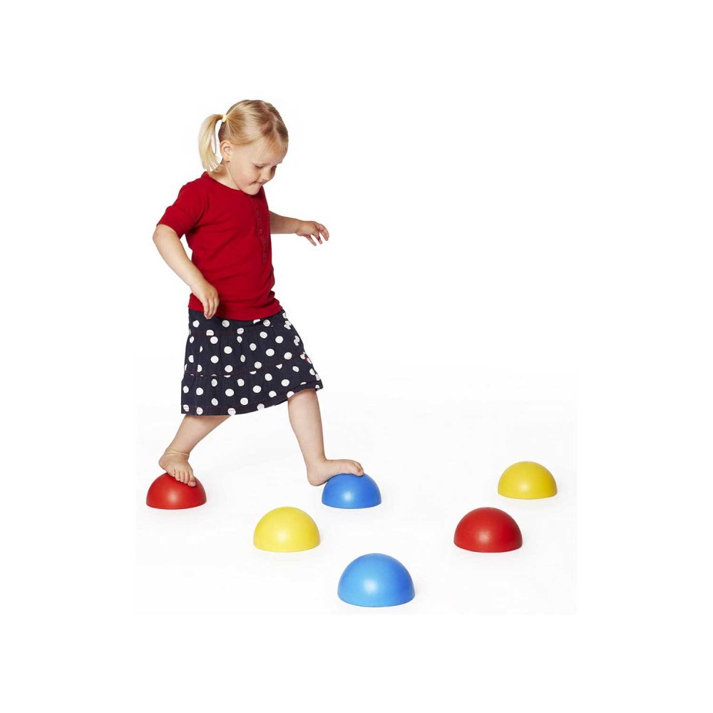 Balansinių pusrutulių rinkinys "Kupolai" skirtas vaikų pusiausvyrai, koordinacijai ir stambiajai motorikai lavinti. Kupolai pagaminti iš tvirto plastiko su neslystančiu guminiu profiliu ir užpildyti smėliu, todėl yra pakankamai sunkūs ir stabilūs, nepaslysta net aktyviai judant. Kupolus galima naudoti abiem pusėmis – tiek plokščiąja, tiek apvaliąja. Tokiu būdu sukuriami skirtingo sudėtingumo vaikščiojimo, balansavimo ar šuoliavimo uždaviniai. Puikiai tinka darželiams, mokykloms, sensorinėms erdvėms, specialiojo ugdymo klasėms bei namų aplinkai.