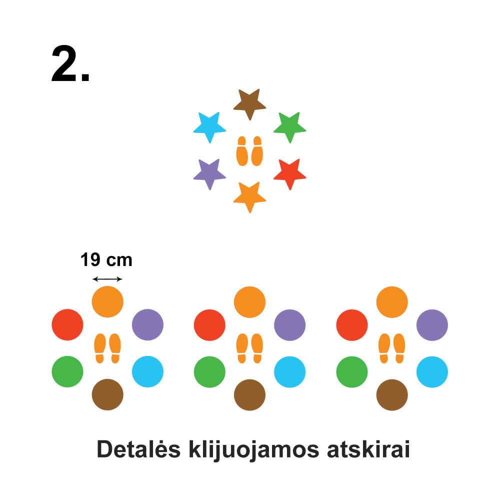 Aktyvumą, pastabumą ir atmintį lavinantis lipdukas ant grindų, žaidimas - kurį vaikai žaidžia įvairiausiais būdais.