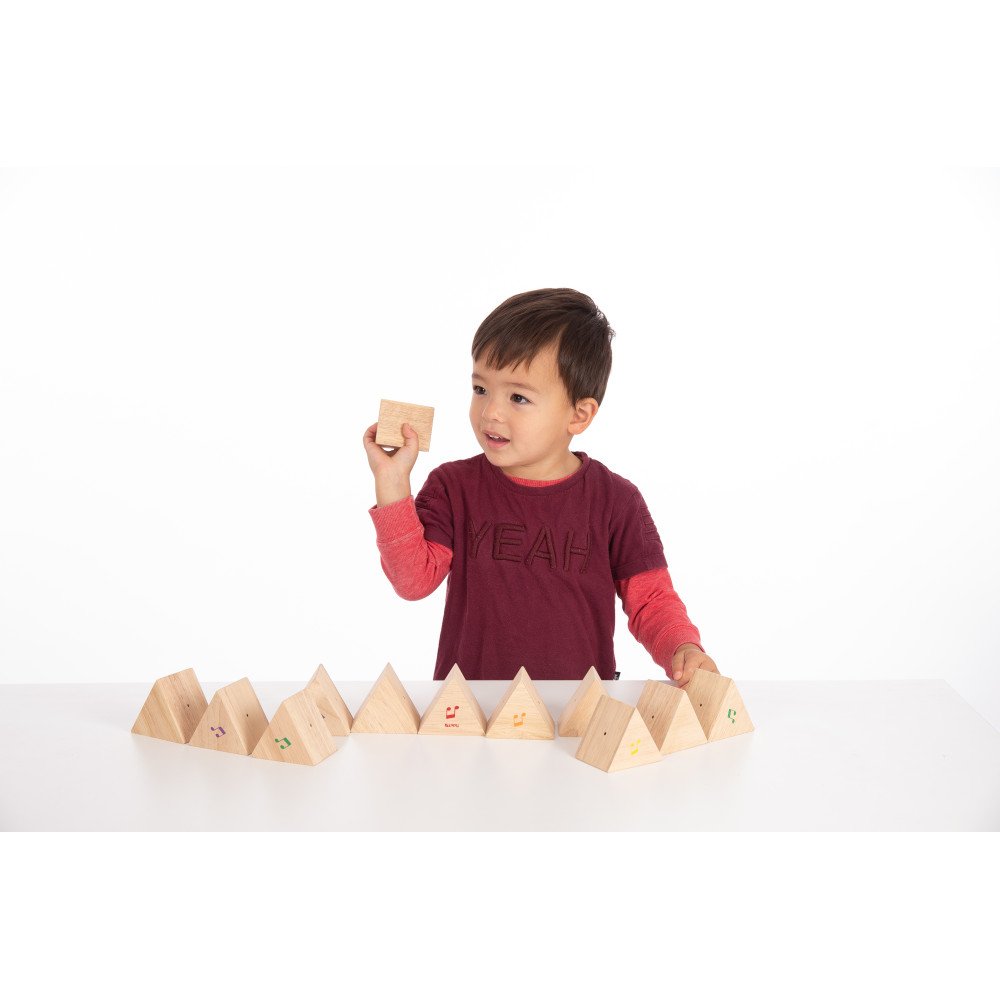 Medinės garsų prizmės padeda vaikams pažinti skirtingus garsus, lavinti klausos dėmesį ir mokytis atskirti panašiai skambančius garsinius signalus. Tai sensorinė priemonė, kuri skatina aktyviai klausytis, lyginti ir ieškoti atitikmenų per žaidimą.