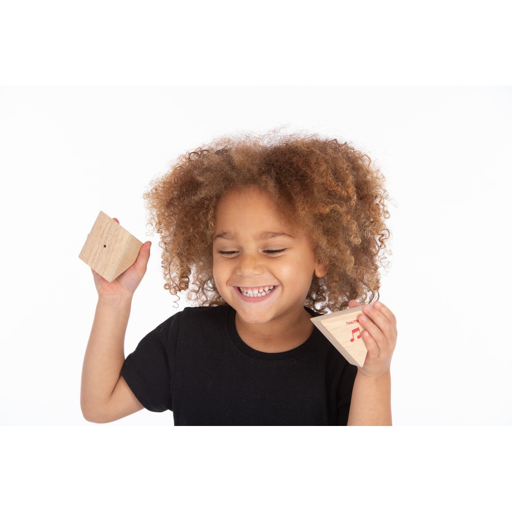 Sensoriniame rinkinyje esančios prizmės sudaro 6 garsų poras, kurias vaikai gali bandyti atpažinti klausydamiesi, purtydami ir lygindami skambesį. Viename gale esantis spalvotas natos ženklas padeda pasitikrinti atsakymą, o apvertus prizmes veikla tampa sudėtingesnė ir labiau orientuota į klausos diskriminaciją. Tokia užduotis naudinga tada, kai siekiama lavinti garsų atskyrimą, klausos atmintį, susikaupimą ir gebėjimą išgirsti skirtumus tarp panašių garsų.