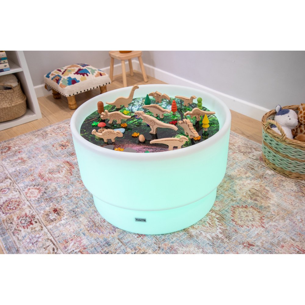 Medinės kaladėlės „Dinozaurų pažinimas” (10 vnt.) suteikia vaikams ryškią taktilinę patirtį per natūralią medieną ir lazeriu iškaltą reljefą. Kiekvienas buko medienos blokelis yra dvipusis: vienoje pusėje matomas dinozauro siluetas su išryškintais bruožais, kitoje – jo išgraviruotas skeletas, todėl vaikai gali lyginti paviršius, jausti reljefo kontrastus ir tyrinėti detales pirštais. Natūrali mediena ir lazeriu išgraviruotos linijos sukuria aiškų jutiminį grįžtamąjį ryšį, todėl priemonė tinka sensorinei integracijai, ramiai veiklai su rankomis ir specialių poreikių vaikams, kuriems svarbūs taktiliniai pojūčiai.