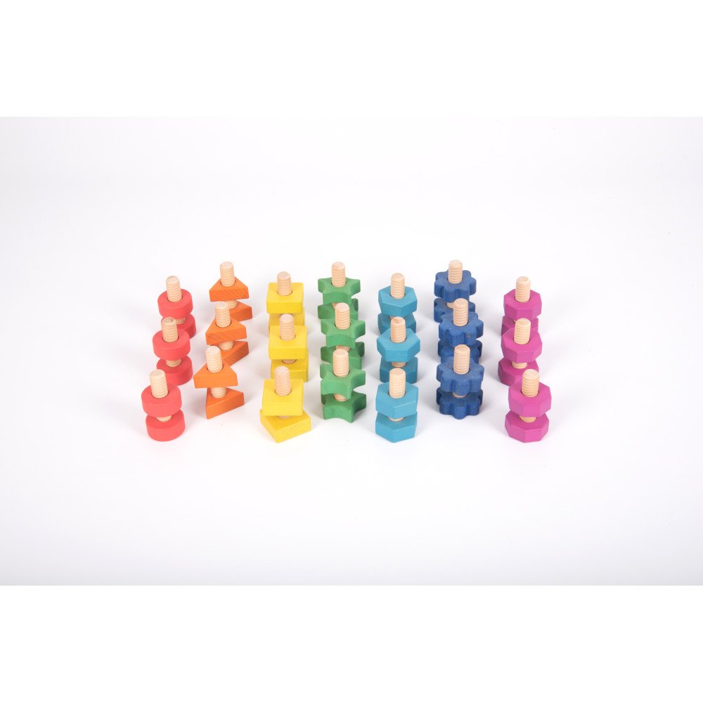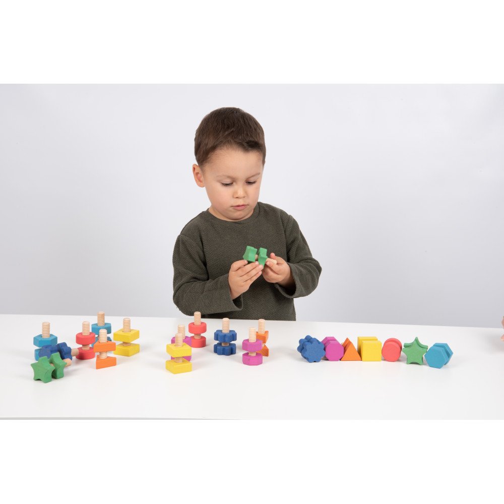 Sensorinė priemonė kviečia vaiką pačiam atrasti, kaip tarpusavyje dera skirtingų formų ir spalvų veržlės bei varžtai. Sukimo judesys, tikslus detalių suderinimas ir bandymas rasti tinkamą porą lavina rankų miklumą, plaštakos kontrolę, rankų ir akių koordinaciją bei judesių tikslumą. Tai ypač vertinga ankstyvajame ugdyme, kai vaikas mokosi per praktinį veiksmą, kartojimą ir savarankišką tyrinėjimą.