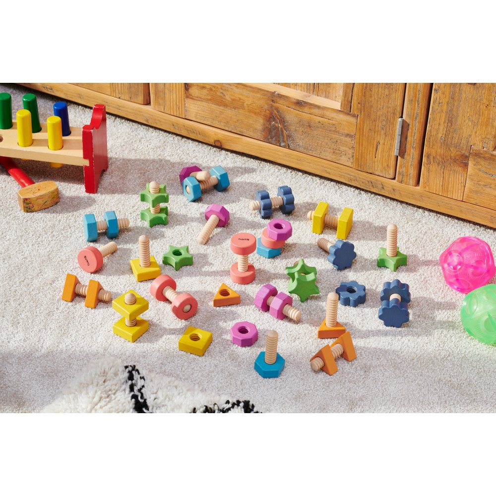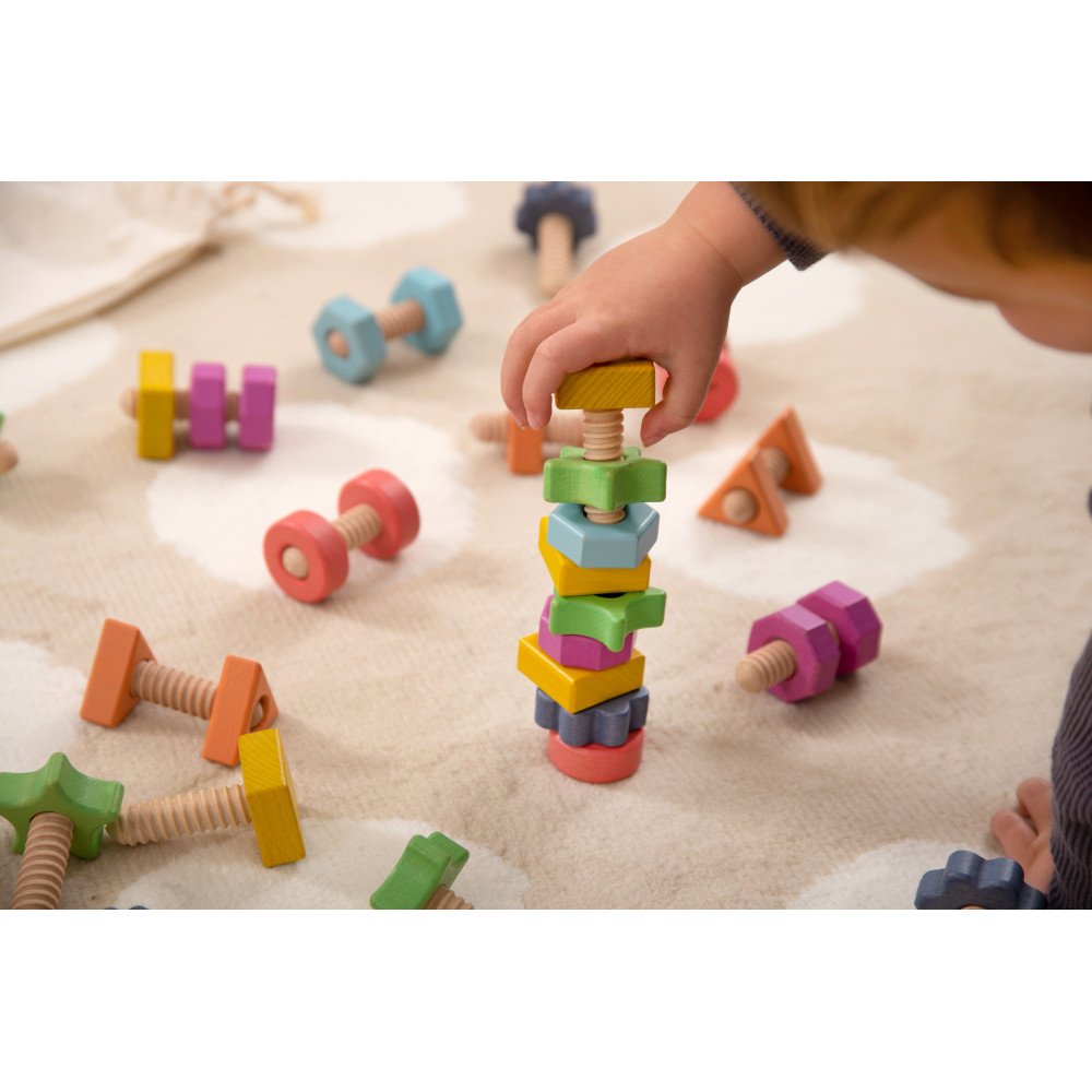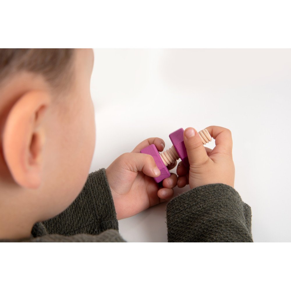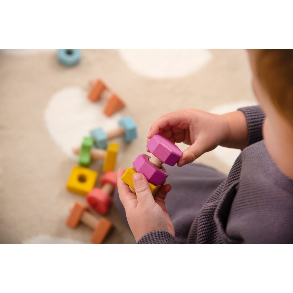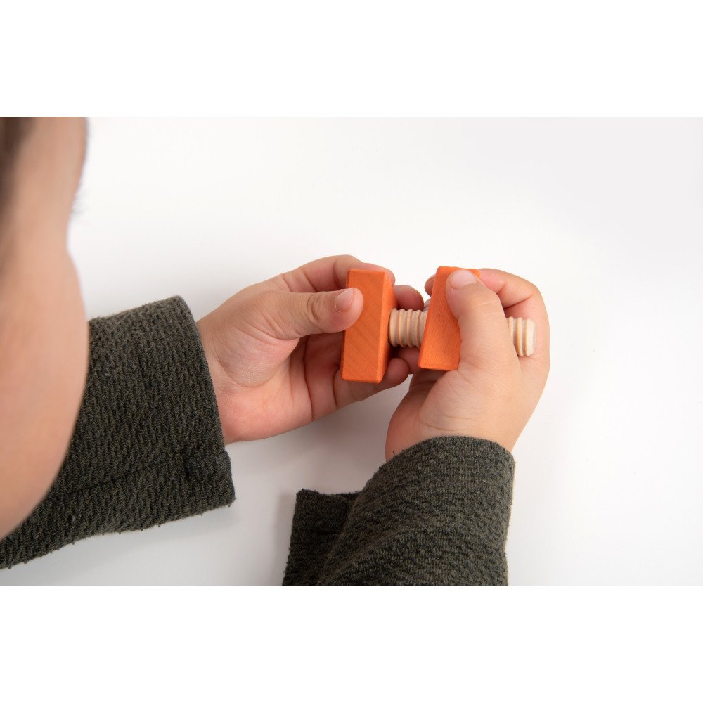Mediniai varžtai ir veržlės padeda lavinti smulkiąją motoriką, pirštų stiprumą ir savarankišką mokymąsi per Montessori principais paremtą veiklą.