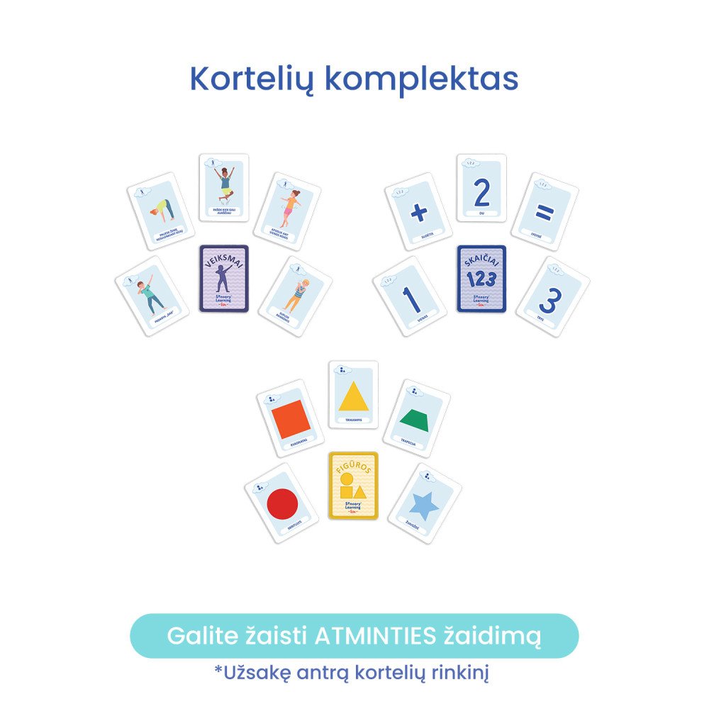 *Užsakę papildomą komplektą kortelių, galėsite žaisti „Atminties" (Memo) žaidimus.