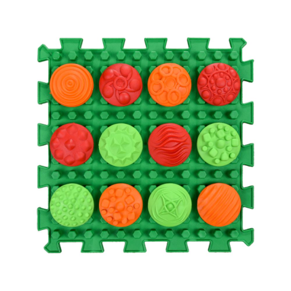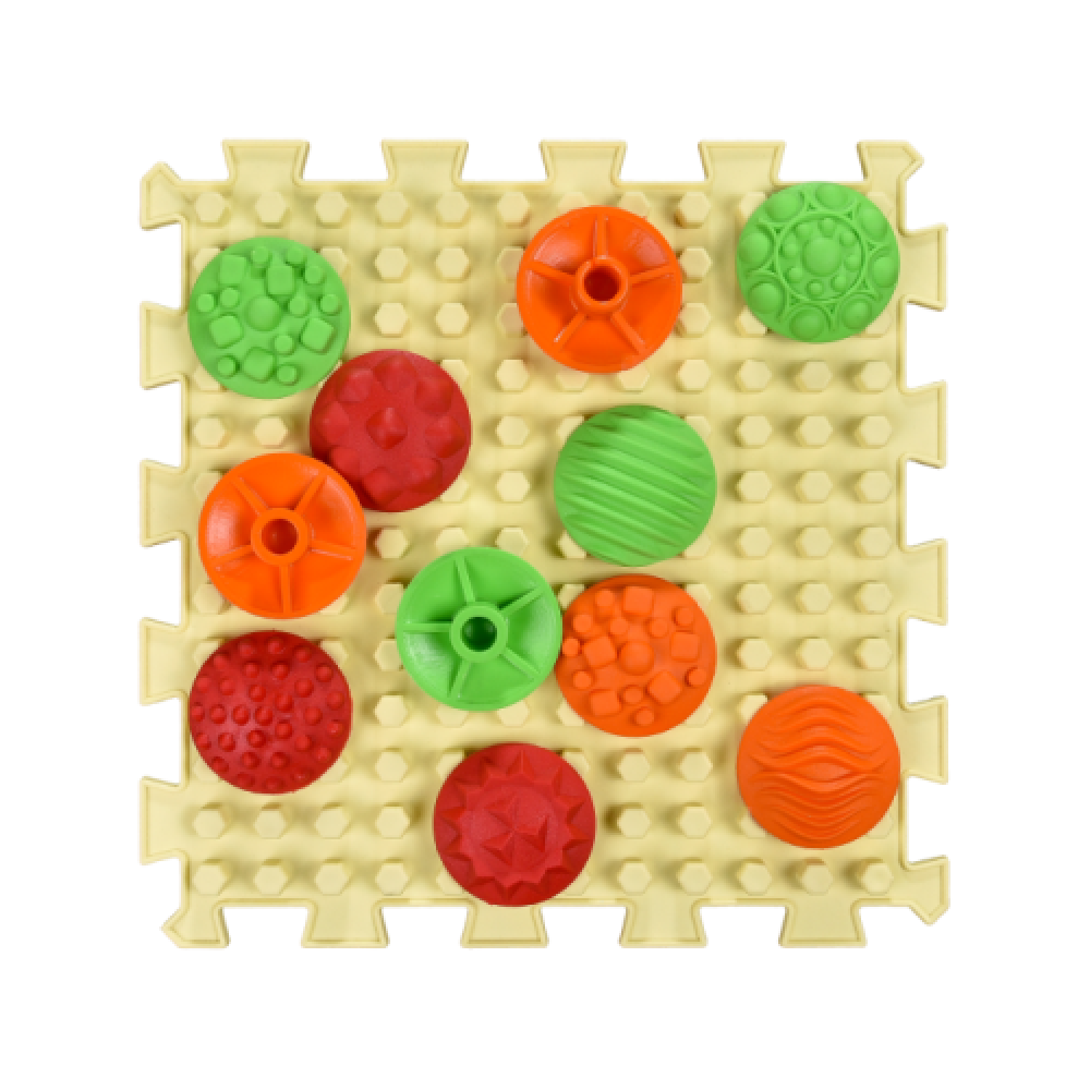 • Komplektacija: 6 ortopediniai masažiniai kilimėliai ir 72 taktiliniai pojūčių diskai.