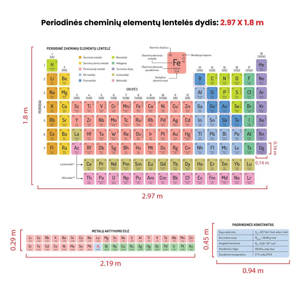 Edukacinis sienų lipdukas „Periodinė cheminių elementų lentelė“ paverčia chemijos kabinetą modernia, aiškia ir mokymuisi palankia erdve. Tai ne tik estetiška klasės dekoracija gimnazijoms ir progimnazijoms, bet ir nuolat matomas informacinis „žemėlapis“, prie kurio patogu sugrįžti kasdien. Vizualiai tvarkingai pateikta lentelė padeda mokiniams greičiau įsiminti elementų pavadinimus, simbolius ir svarbiausias savybes, lengviau susigaudyti sudėtingose temose bei tvirčiau pasiruošti kontroliniams darbams ir egzaminams.