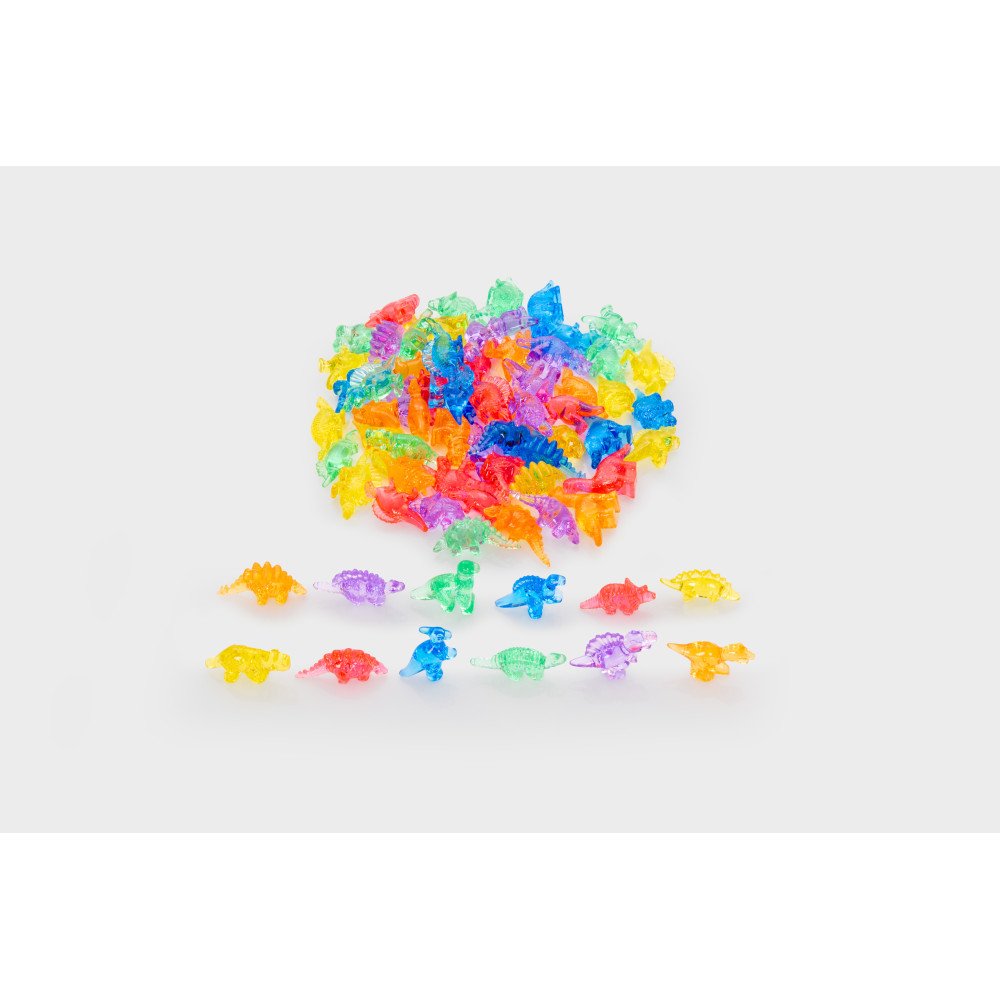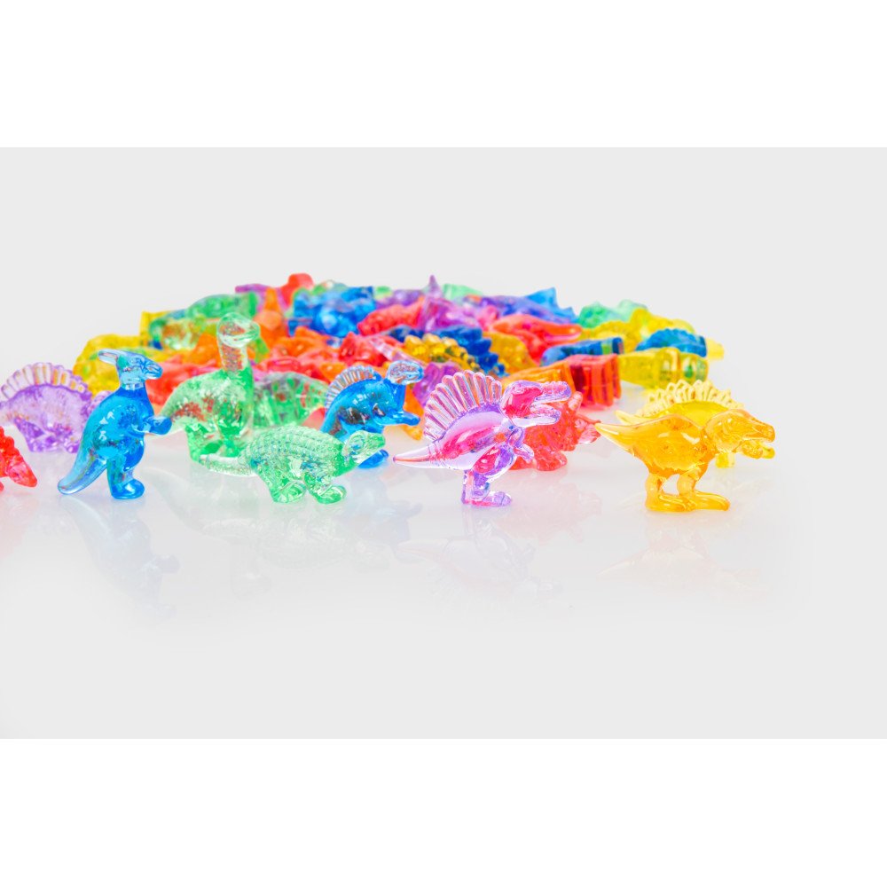• Komplektacija: 72 vnt. permatomų dinozaurų figūrėlių; 1 vnt. laikymo indelio su dangteliu.