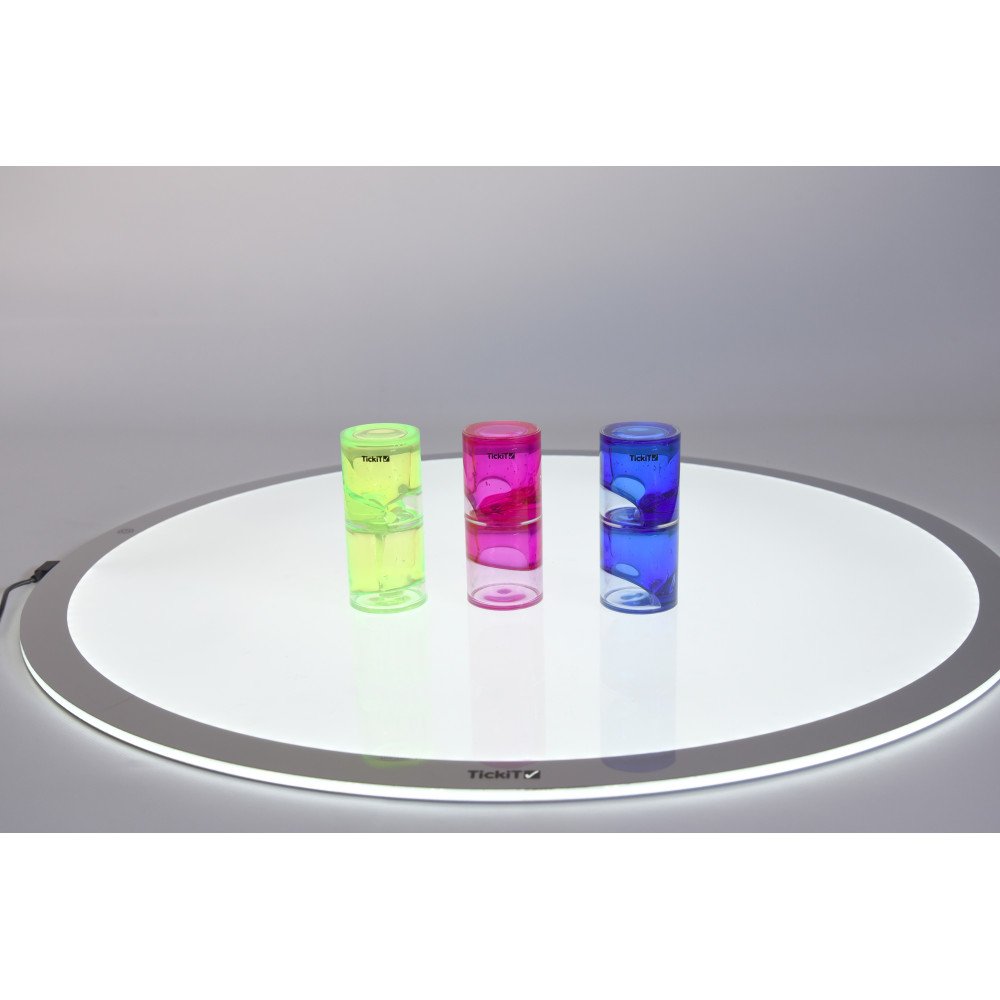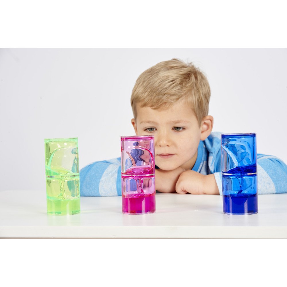 Permatomi indeliai su judančiu skysčiu (3 vnt.) – vamzdelių su skysčiu rinkinys padeda vaikams nurimti, sutelkti dėmesį ir ramiai stebėti judėjimą. Trijuose skaidriuose vamzdeliuose esanti tiršta, netoksiška želė lėtai teka ir spirale nusileidžia žemyn, todėl vaiką natūraliai įtraukia į tylų, koncentruotą stebėjimą. Tai puiki priemonė sensoriniam kambariui, ugdymo įstaigoms ir darbui su specialių poreikių vaikais, kai svarbus nusiraminimas, emocijų valdymas ir dėmesio išlaikymas.