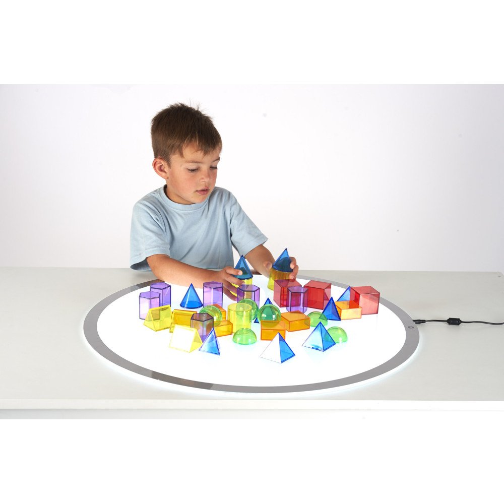 Permatomų 3D geometrinių figūrų rinkinys – tai praktiška ugdymo priemonė, padedanti vaikams pažinti erdvines formas, spalvas ir jų savybes per žaidimą bei tyrinėjimą. Rinkinyje esantys 12 skirtingų 3D kūnų 6 ryškių spalvų ypač tinka veikloms su šviesos panele ar šviesos stalu, kai vaikai gali stebėti permatomumo efektą, šešėlius, kontūrus, lyginti formas tarpusavyje ir atrasti spalvų sluoksniavimo galimybes.