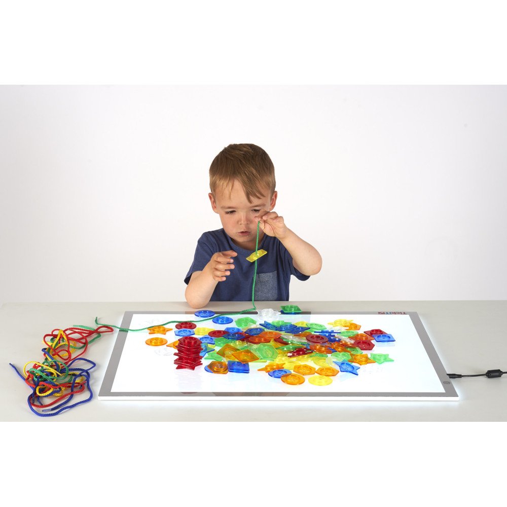 • Tinka sensorinėms veikloms ant šviesos stalo.