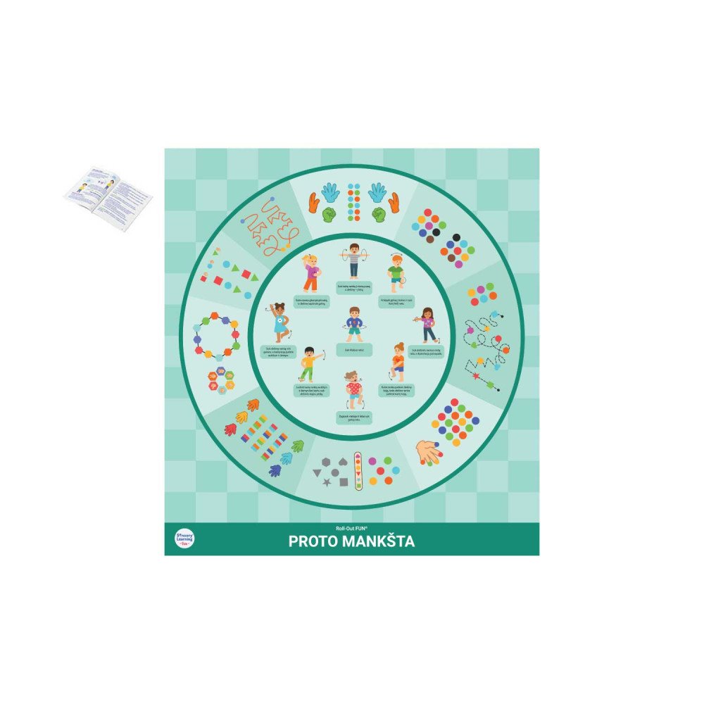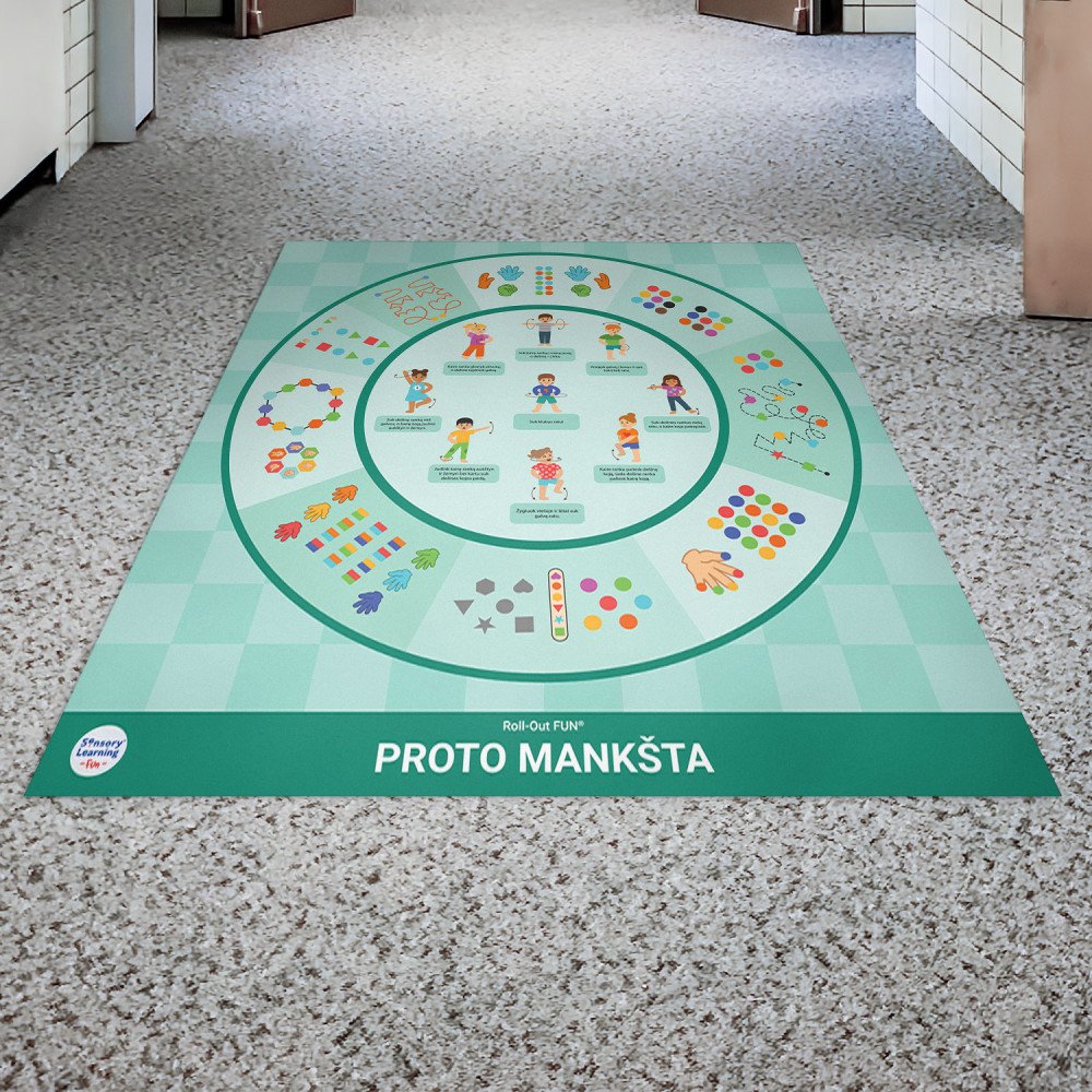 Roll-Out FUN® motorikos lavinimo kilimas „Proto mankšta“ – tai žaisminga ir interaktyvi edukacinė priemonė, padedanti vaikams lavinti smulkiąją ir stambiąją motoriką, koordinaciją bei aktyvų mąstymą. Kilimo centre pavaizduoti linksmi pratimai, skatinantys derinti rankų, kojų ir kūno judesius, o aplinkui – motorikos žaidimai: nuo pirštų takelių iki delnų veiksmų sekų. Šis kilimas padeda lavinti dėmesingumą, judesių tikslumą, pusiausvyrą ir orientaciją erdvėje, taip pat skatina abiejų smegenų pusrutulių bendradarbiavimą. Puikiai tinka ikimokyklinio ir priešmokyklinio amžiaus vaikams, norintiems mokytis per judesį, tyrinėjimą ir žaidimą.