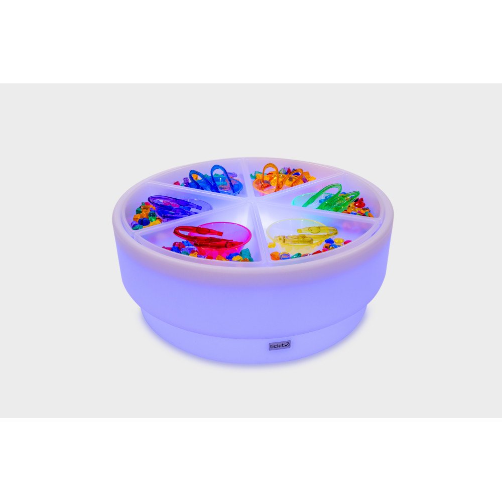 Žemo šviesos stalo rinkinys „Rūšiavimo pagrindai” padeda lavinti spalvų pažinimą, skaičiavimą ir smulkiąją motoriką per įtraukiančias tyrinėjimo veiklas.