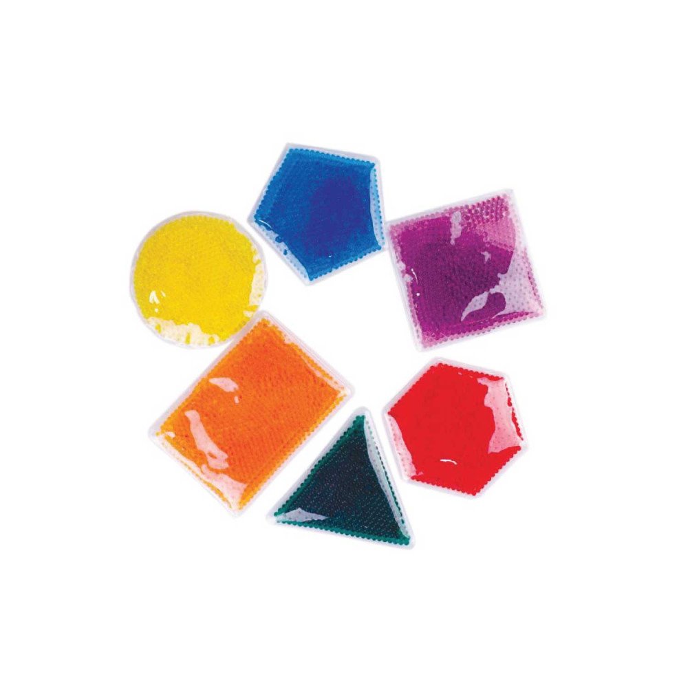 Rinkinį sudaro šešios skirtingos geometrinės formos – apskritimas, kvadratas, trikampis, stačiakampis, penkiakampis ir šešiakampis. Ryškios spalvos ir permatomas gelis skatina vaikų smalsumą, padeda pažinti formas, spalvas ir stebėti judėjimą formos viduje. Laikant formas prieš šviesą ar naudojant kartu su šviesos stalu, sustiprėja vizualinis efektas ir atsiranda papildomos tyrinėjimo galimybės.