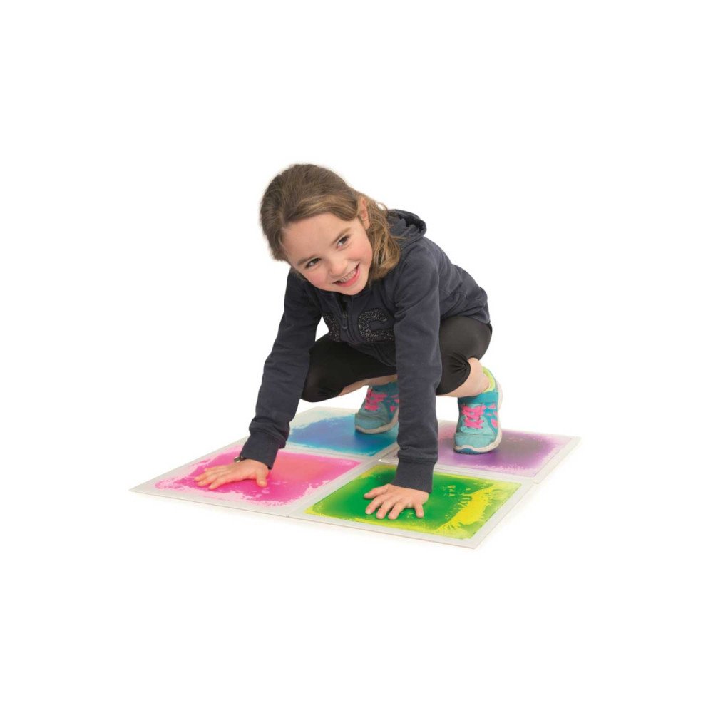 Plonos, sandarios plytelės su kosmetiniu (nekenksmingu) skysčiu sukuria ryškų sūkurio efektą vos spustelėjus – skatina judėti ir tyrinėti. Viršus atsparus braižymuisi ir dilimui, apačia – neslystanti. Atlaiko intensyvų naudojimą, neįgaliųjų ir transportavimo vežimėlių svorį. Tinka darželiams, mokykloms, SI/ergoterapijai. Galima naudoti ant stalo ar bet kurioje lygioje vietoje.