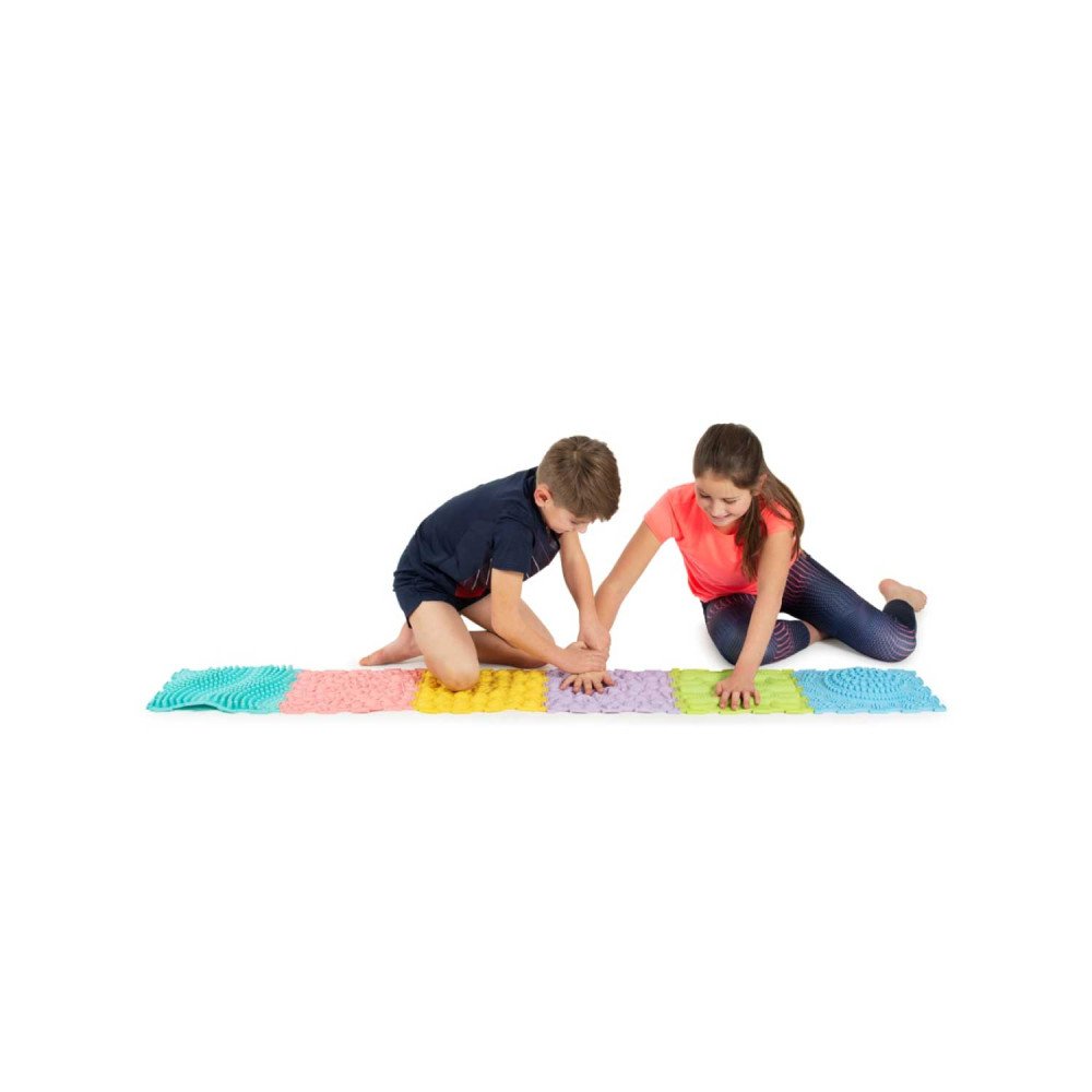 Sukurkite savo pojūčių taką ar žaidimų zoną! Sensoriniai dėlionės kilimėliai jungiasi tarpusavyje kaip dėlionė, todėl lengvai suformuosite didesnį kilimą ar kūrybišką maršrutą. Kiekviena plytelė turi unikalią taktilinę tekstūrą ir atskirą spalvą, kuri skatina lytėjimo tyrinėjimą, spalvų atpažinimą ir judėjimo įvairovę.