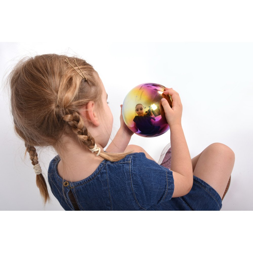 Kamuoliai yra skirtingų dydžių, todėl juos patogu ridenti, gaudyti, laikyti abiem rankomis ir lyginti tarpusavyje. Apvalus veidrodinis paviršius rodo iškraipytą vaizdą, o pasukus kamuolį ar pakeitus apšvietimą atspindys ir atspalviai pasikeičia. Vaikai pastebi, kaip jų veidas išsikraipo, kaip daiktai atrodo arčiau ar toliau, ir mokosi stebėti bei apibūdinti pokyčius. Tokia veikla ypač patraukli sensoriniam žaidimui, kai norisi aiškaus, vizualiai stipraus rezultato.