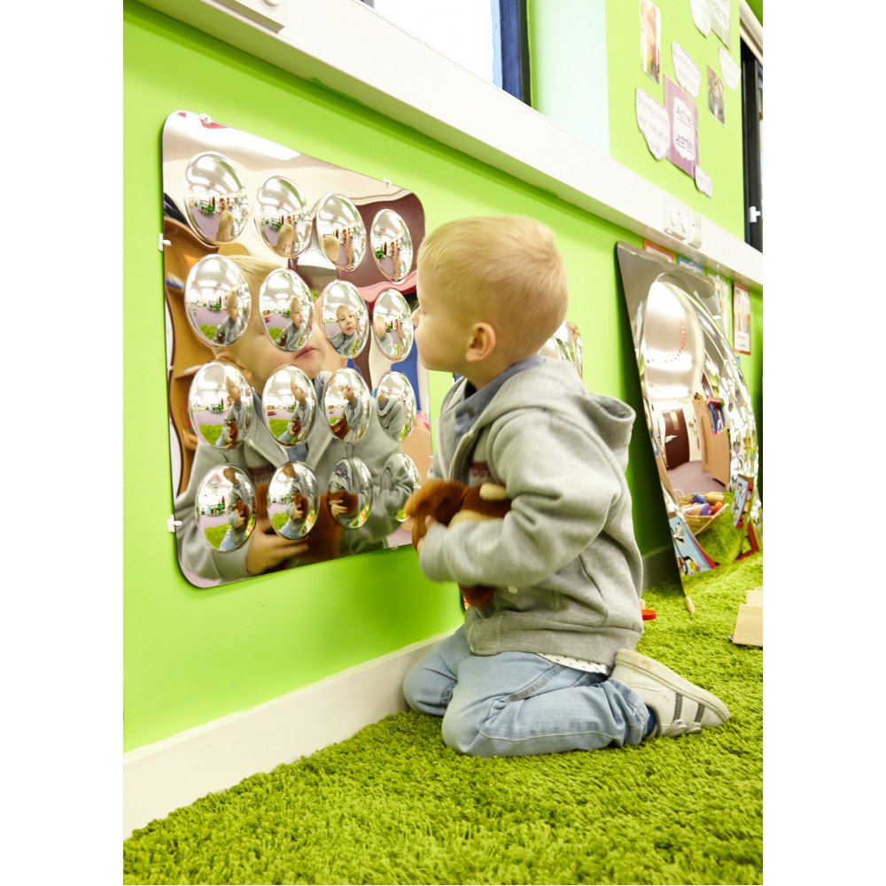Sensoriniame veidrodyje esantis didelis kupolų skaičius suteikia vaikams galimybes lyginti objektus, pastebėti skirtumus, stebėti judesio pokyčius ir tyrinėti, kaip tas pats objektas ar veidas atrodo skirtinguose veidrodžiuose. Tai ypač naudinga pažintinėms veikloms, kai svarbus ne tik pojūtis, bet ir analizė, dėmesio sutelkimas bei stebėjimas. Veidrodis dažnai tampa ilgalaike veiklos stotele, prie kurios vaikai grįžta vėl ir vėl.