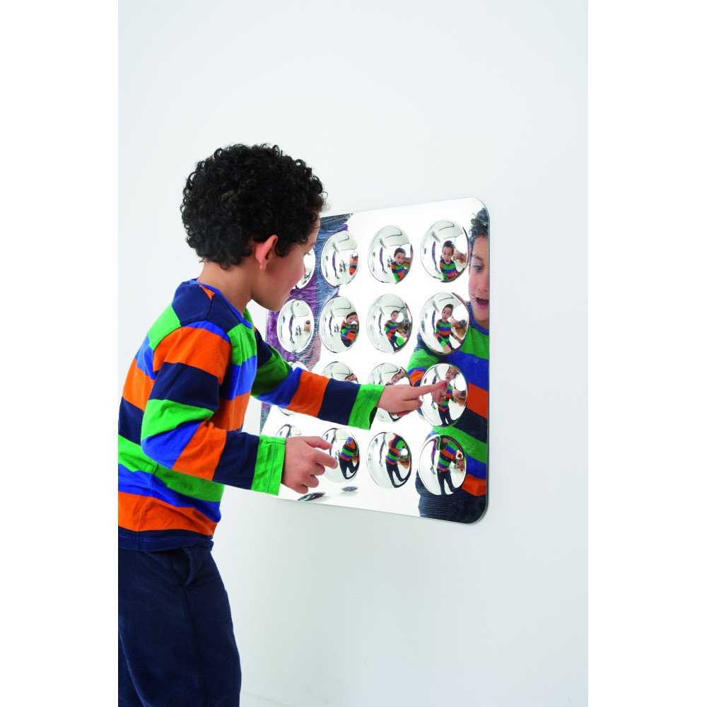Sensorinis veidrodis su 16 išgaubtų kupolų – tai vizualiai patraukli ugdomoji priemonė, skirta vaikų smalsumui, stebėjimo gebėjimams ir savęs pažinimui lavinti. Šioje akrilinėje plokštėje išdėstyti net šešiolika išgaubtų veidrodinių paviršių, kurie vienu metu pateikia daugybę skirtingų atspindžių, vaizdo iškraipymų ir perspektyvų.