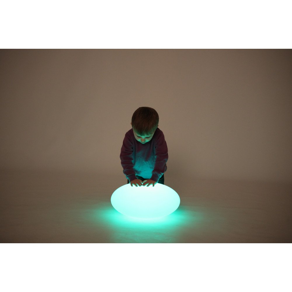 Sensorinis šviesos akmuo – šviečianti, tuščiavidurė figūra, skirta kurti ramią aplinką ir padėti vaikams nusiraminti per švelnią šviesą ir spalvas. Ši priemonė ypač naudinga specialių poreikių vaikams, kai emocijos greitai „užkyla“, o reikia aiškaus, saugaus būdo grįžti į ramesnę būseną. Pastovus švelnus švytėjimas arba lėtas spalvų perėjimas padeda sumažinti įtampą, sukuria nuspėjamą sensorinį foną ir gali palaikyti savireguliaciją sensoriniame kambaryje, emocijų kampelyje ar vaiko miegamajame.