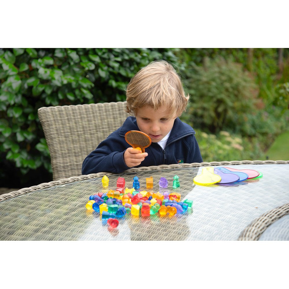 Ant šviesos stalo permatomos spalvos išryškėja, todėl vaikui lengviau orientuotis erdvėje ir išlaikyti dėmesį atliekant užduotį. Rinkinys tinka ugdymo įstaigoms ir specialiųjų poreikių vaikams, kai norisi struktūruotos, kartojamos veiklos smulkiajai motorikai.