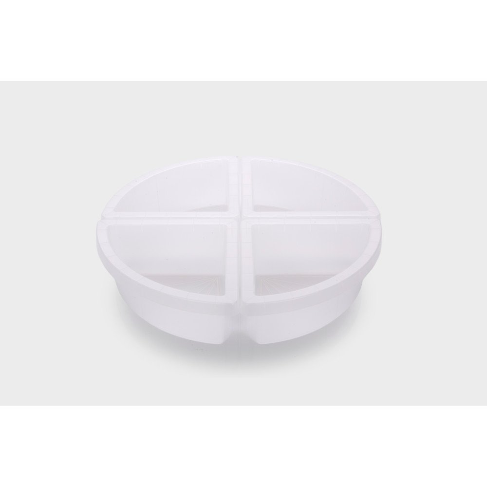 • Rinkinį sudaro 4 skaidrūs padėklai su 4 atskirais skyriais kiekviename.