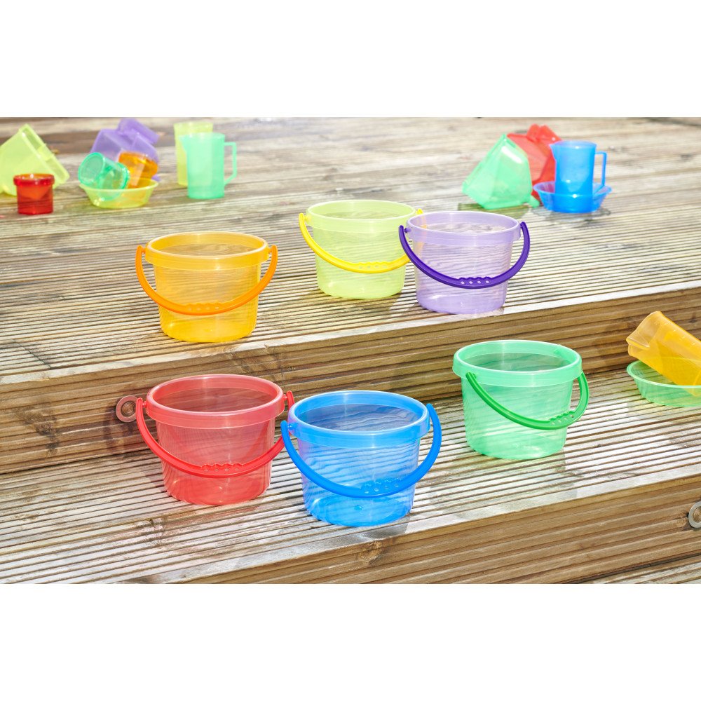 • Komplektacija: 6 vnt. permatomų spalvotų kibirėlių.