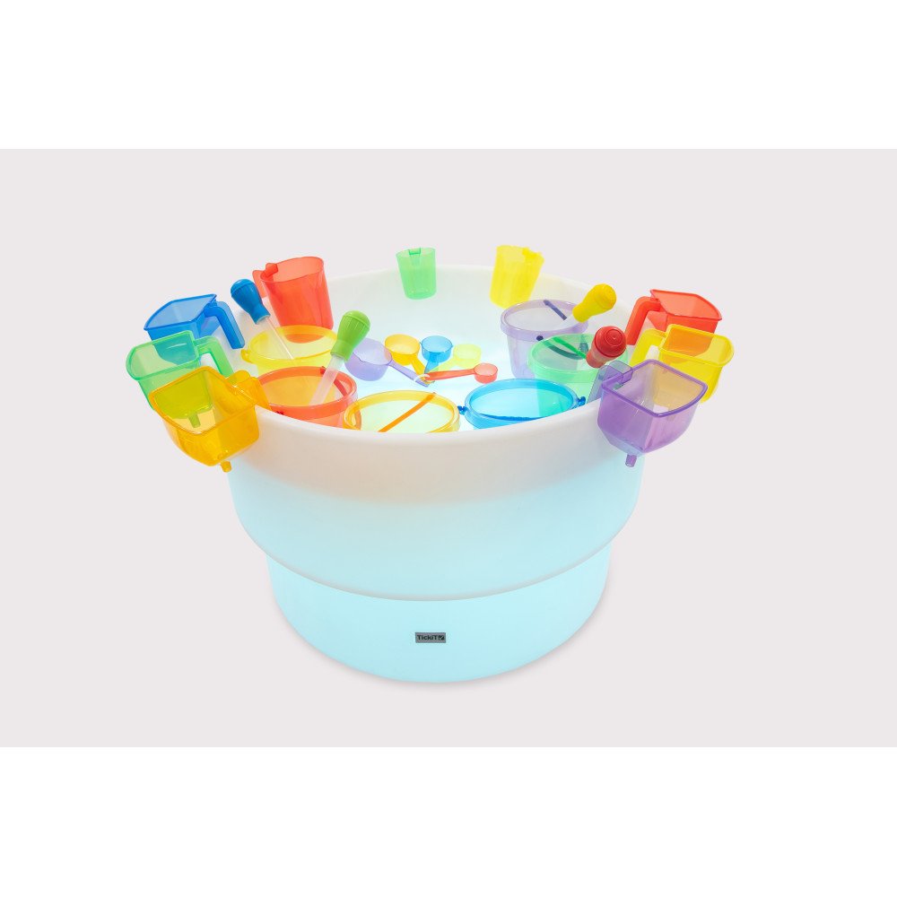 Sensorinis vandens stalo rinkinys „Skysčių tyrinėjimas” sukurtas sensoriniam ugdymui, ankstyvajam gamtos pažinimui ir patirtiniam mokymuisi per vandenį, smėlį bei kitų medžiagų tyrinėjimą. Spalvas keičiantis stalas su gilia tyrinėjimo zona padeda kurti vaikams patrauklią aplinką, kurioje jie gali pilstyti, matuoti, stebėti, lyginti ir eksperimentuoti.