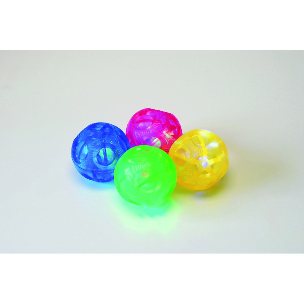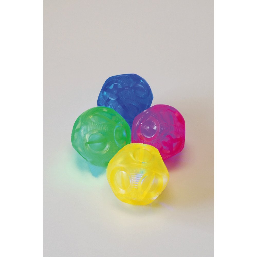 Šių kamuolių išskirtinumas – nelygus paviršius, dėl kurio jie atšoka neprognozuojama kryptimi. Numetus ar atšokus kamuoliui, įsijungia mirksinti LED šviesa, todėl vaikas vienu metu seka ir šviesą, ir netikėtai besikeičiantį judesį. Tokia veikla padeda lavinti akių sekimą, reakcijos greitį, rankų ir akių koordinaciją bei judesių kontrolę.