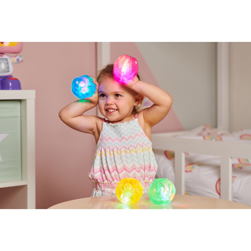 Šoklūs šviečiantys kamuoliai skatina vaikų dėmesį, reakciją ir judesių koordinaciją per netikėtą, įtraukiantį judesį.