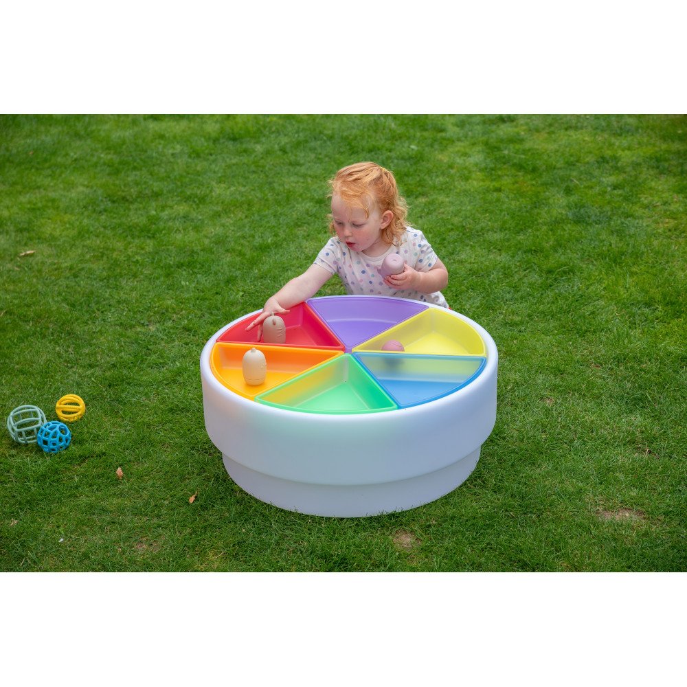 Spalvoti tyrinėjimo padėklai padeda organizuoti grupines kūrybines sensorinio ugdymo veiklas, kuomet kiekvienas vaikas turi atskirą erdvę tyrinėjimui.