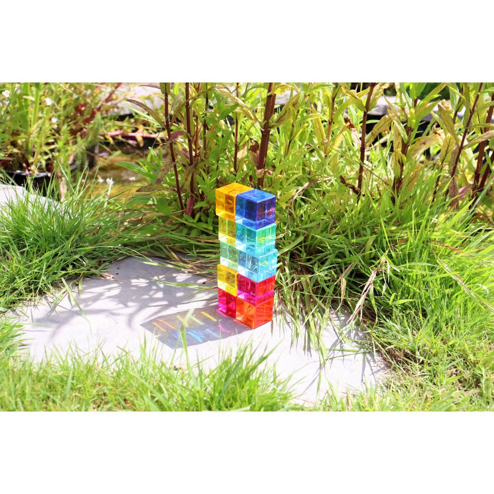 Spalvotų akrilinių kubelių rinkinys (10 vnt.) – tai vizualiai žavios, tvirtos ir malonios liesti ugdomosios detalės, skirtos spalvų pažinimui, konstravimui ir kūrybiniam žaidimui. Rinkinį sudaro 10 vientiso akrilo kubelių skirtingų ryškių spalvų. Kiekvienas kubelis yra kruopščiai apdirbtas – su glotniais kraštais, todėl patogu laikyti mažose rankose, o sudėti kartu kubeliai skleidžia malonų garsą.