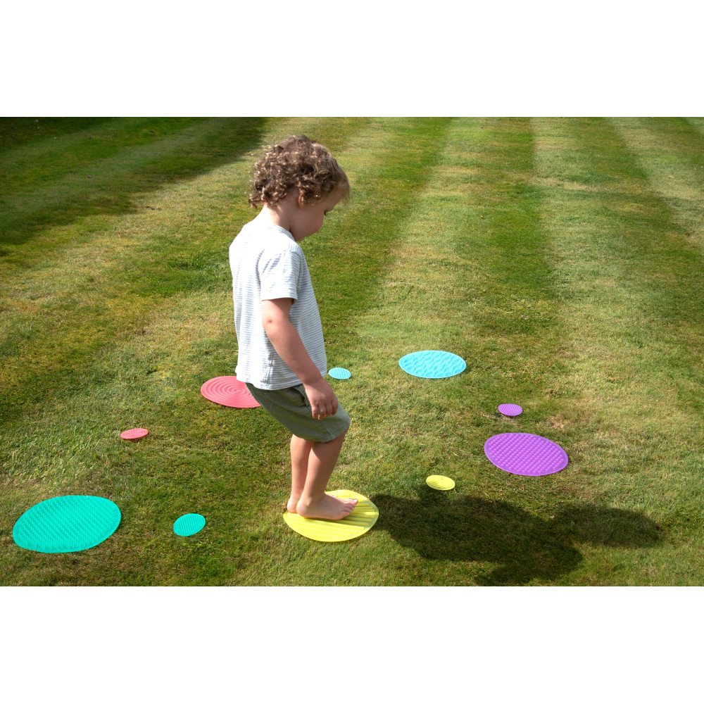 Ši priemonė suteikia vaikams galimybę pažinti skirtingus paviršius ne tik rankomis, bet ir pėdomis. Kiekvienas apskritimas turi vis kitokią tekstūrą, todėl vaikai gali lyginti, atpažinti ir apibūdinti pojūčius, mokytis nusakyti skirtumus bei sieti mažus ir didelius apskritimus pagal paviršiaus raštą. Tai ypač naudinga sensoriniam ugdymui, sensorinei integracijai ir veikloms, kuriose svarbus kryptingas jutiminis patyrimas.