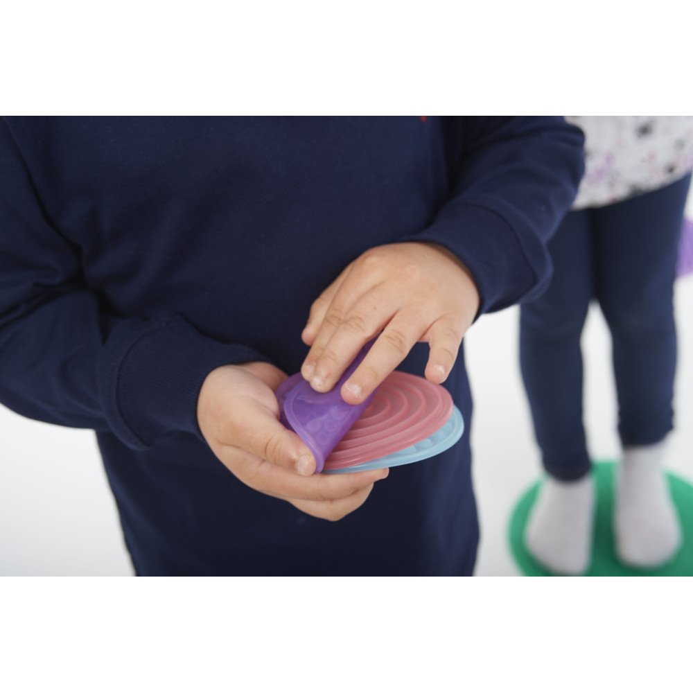 Silikoniniai sensoriniai apskritimai padeda lavinti lytėjimo pojūtį, sensorinį pažinimą, apibūdinimo kalbą ir kūno suvokimą per rankų bei pėdų tyrinėjimo veiklas.