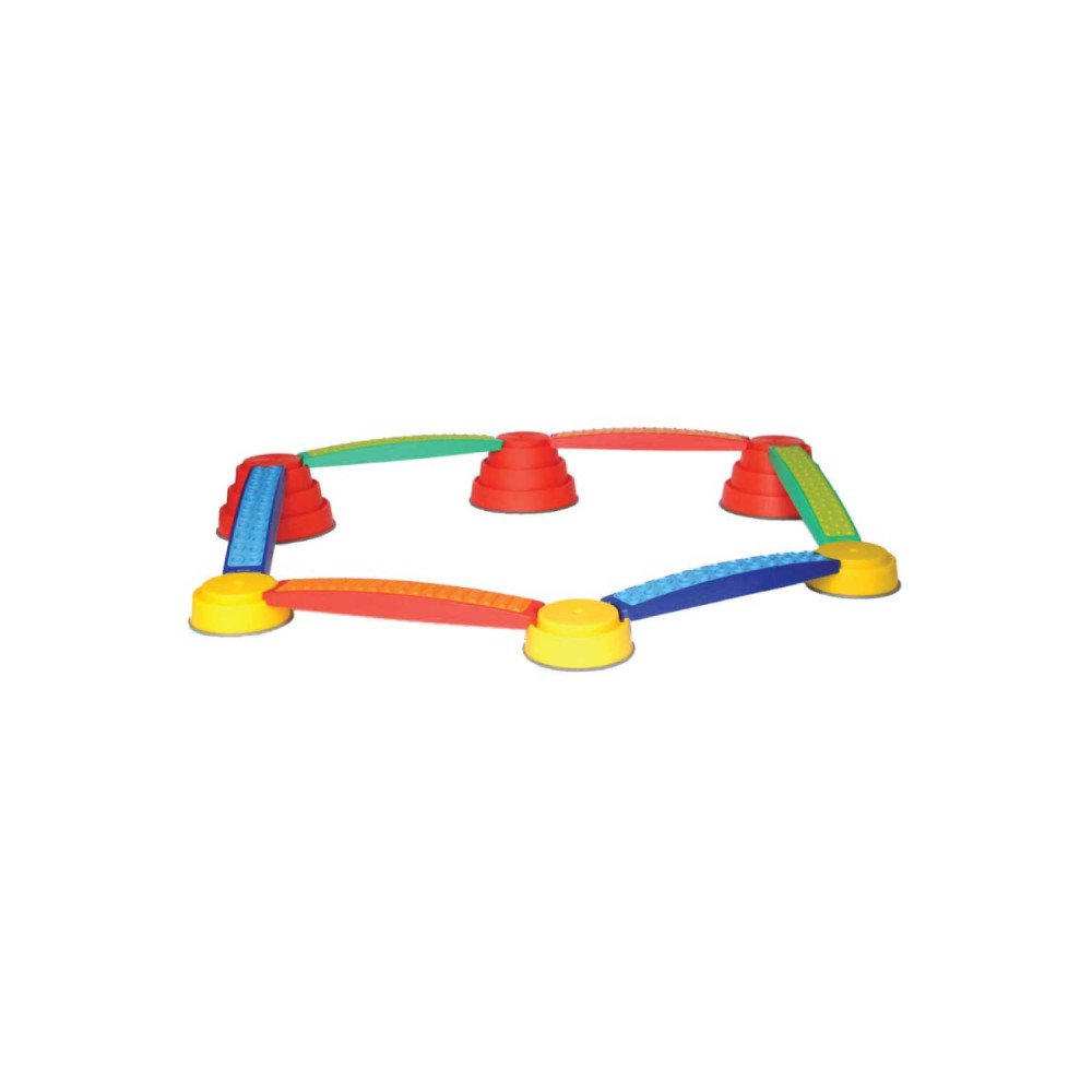 Rinkinį sudaro taktiliniai balansavimo skersiniai su malonia, guminio paviršiaus tekstūra bei skirtingo aukščio atramomis (pilonais), kurie leidžia kurti tiesius takus, pakilimus, nusileidimus ar sudėtingesnes balansavimo trasas. Skirtingi aukščiai ir paviršiai suteikia vaikams įvairių judesio ir pojūčių patirčių, skatina kūno suvokimą, stiprina pėdų receptorius bei lavina propriocepciją.
