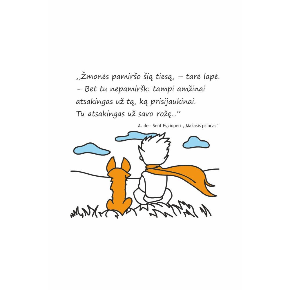 Kartais tuščiai sienai pakanka vienos detalės ir kambarys atsinaujins akimirksniu. Citatoje pabrėžiama mintis, kad reikia būti atsakingam už tai, ką žmogus prisijaukina arba kuo rūpinasi, pavyzdžiui, už rožę. Tai gali padėti vaikams suprasti ir prisiminti, kaip svarbu prisiimti atsakomybę už savo veiksmus, daiktus ir santykius. Ši motyvuojanti citata gali paskatinti ir prasmingus pokalbius apie atsakomybę, santykius ir rūpinimosi savimi bei kitais svarbą.