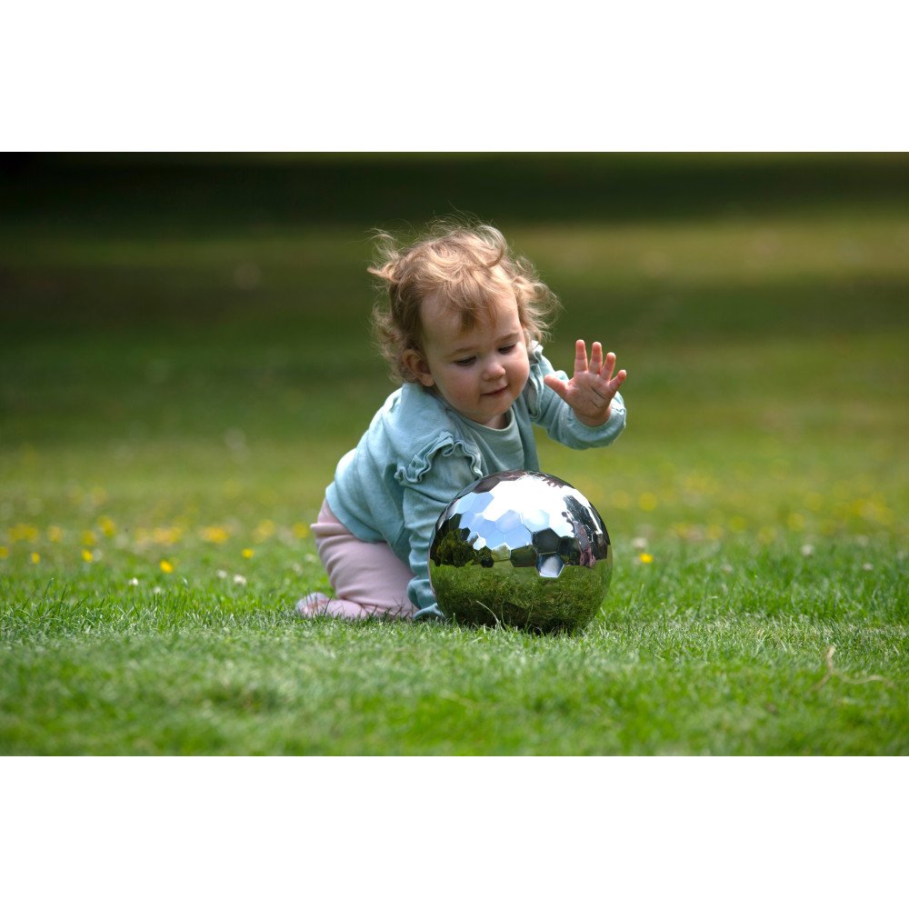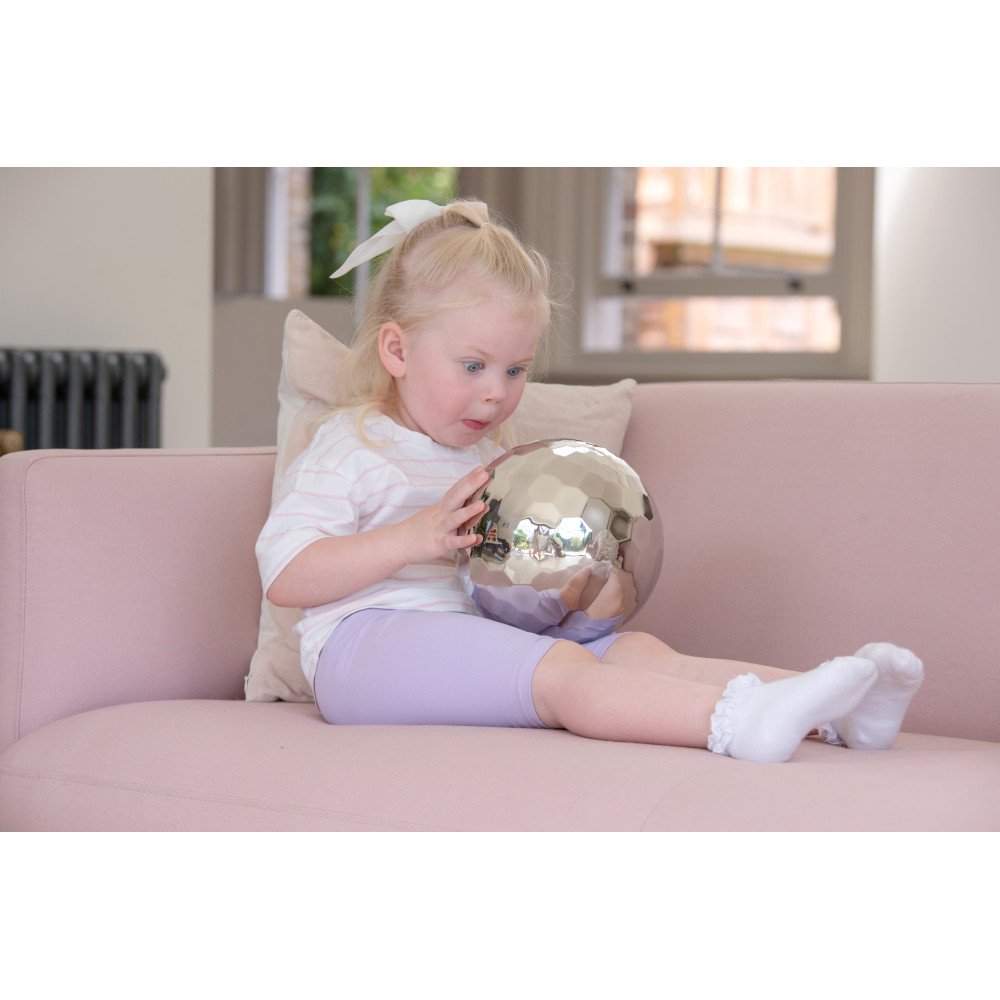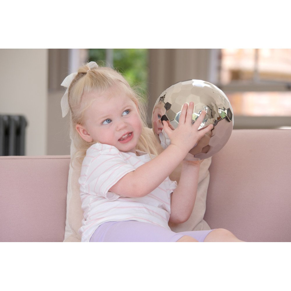 Veidrodinis riedantis kamuolys suteikia vaikams stiprią sensorinę patirtį per kintančius atspindžius, garsą ir nenuspėjamą riedėjimą.