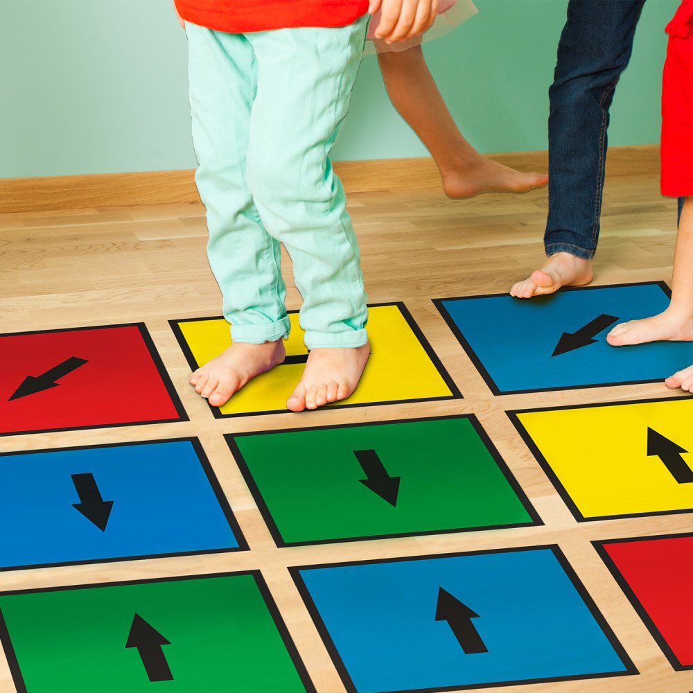 - Patys mažiausi žaidėjai gali pagal susitarimą šokinti arba pagal rodyklių kryptis arba pagal spalvas.