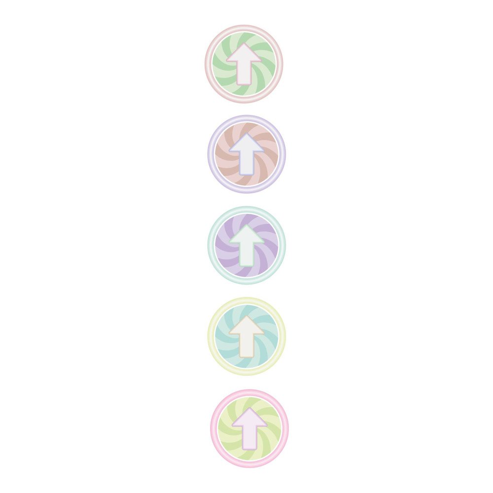 Grindų lipdukai – „Saldainiai“ skatins atidumą, kai klasėje ar koridoriuje reikės sekti rodykles! Primenantis saldainius dizainas puikiai tiks darželio papuošimui, o pasitelkus fantaziją lipdukai gali tapti ir įdomia priemone žaidimams ar sportui.